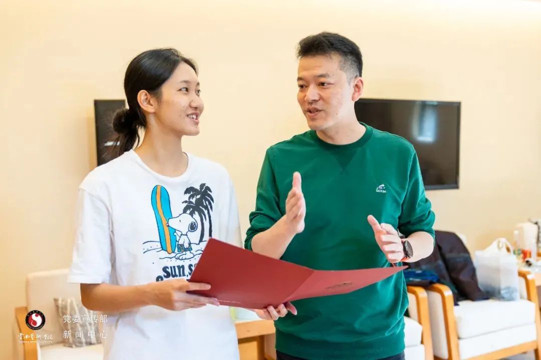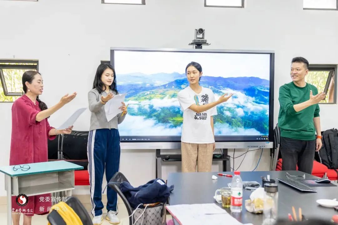 学校选拔优秀教师组建指导教师团队,精心安排包括政策理论、思政教育、外交纪律、哈尼文化、语言能力、仪表仪态、心理健康、生态环保等方面的课程,为两名同学开展了为期10天的全面系统的培训和训练。期间,学校党委副书记李从熙、杨国良多次到培训现场关心慰问教师、学生。团委、对外合作交流处、艺术管理学院、戏剧学院、马克思主义学院等职能部门和学院,以及云南民族大学白岩松老师群策群力,争分夺秒为两位同学指导授课,帮助同学在最短时间内获得最大提高、以最佳呈现讲好本民族的故事。两个女孩经历了犹豫、怀疑和挫折,反复修改了演讲稿,她们快速成长起来,也更有信心了。