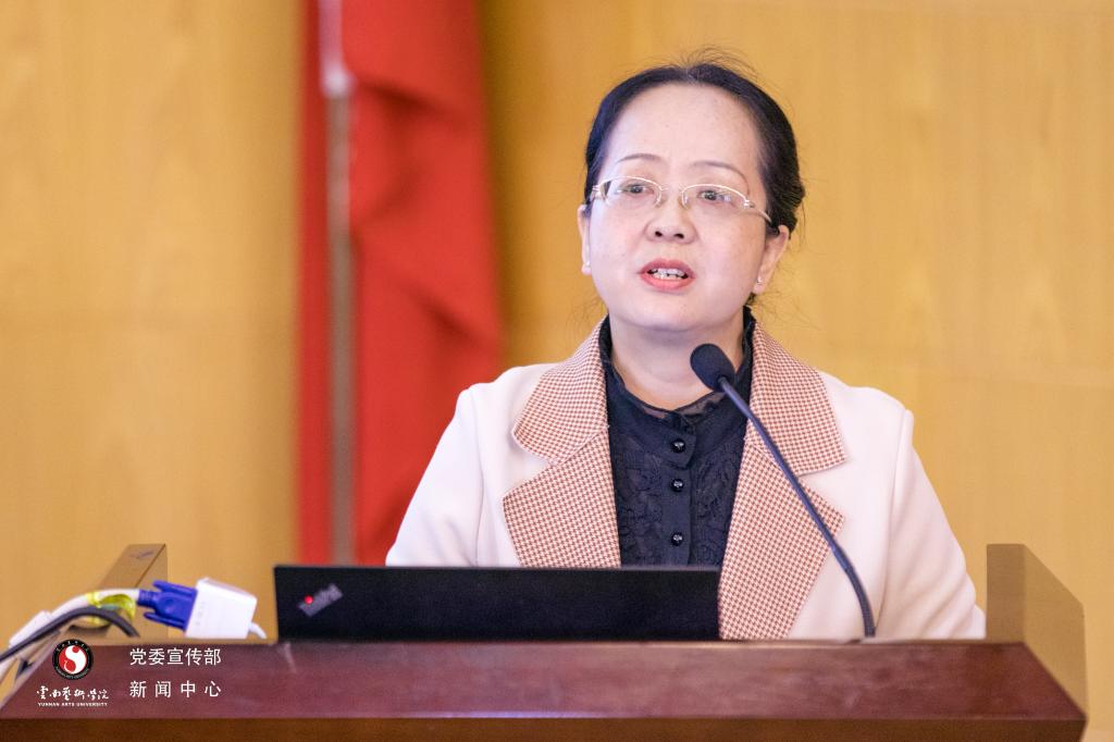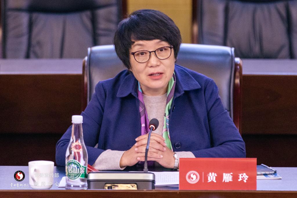 最后,校党委书记黄雁玲从“深刻领会习近平生态文明思想的重要意义和丰富内涵”“进一步抓实抓好生态文明教育”两个方面做了总结发言。她强调:我们要抓住联合国生物多样性大会在昆明成功召开的有利契机,结合深入学习贯彻习近平总书记考察云南重要讲话精神,进一步学习贯彻习近平生态文明思想,把握习近平生态文明思想的基本内容、精神实质、实践要求、重要意义,结合学校实际,担当使命,做习近平生态文明思想的坚定信仰者、积极传播者、忠实践行者,为云南建设成为生态文明建设排头兵、中国最美丽省份作出应有的新贡献。她要求:要进一步整合资源,把习近平生态文明思想融入教育教学全过程;要充分发挥学科优势,将习近平生态文明思想融入科研和创作展演;要深入开展节约型单位、绿色学校等创建行动,增强师生生态文明建设责任感。