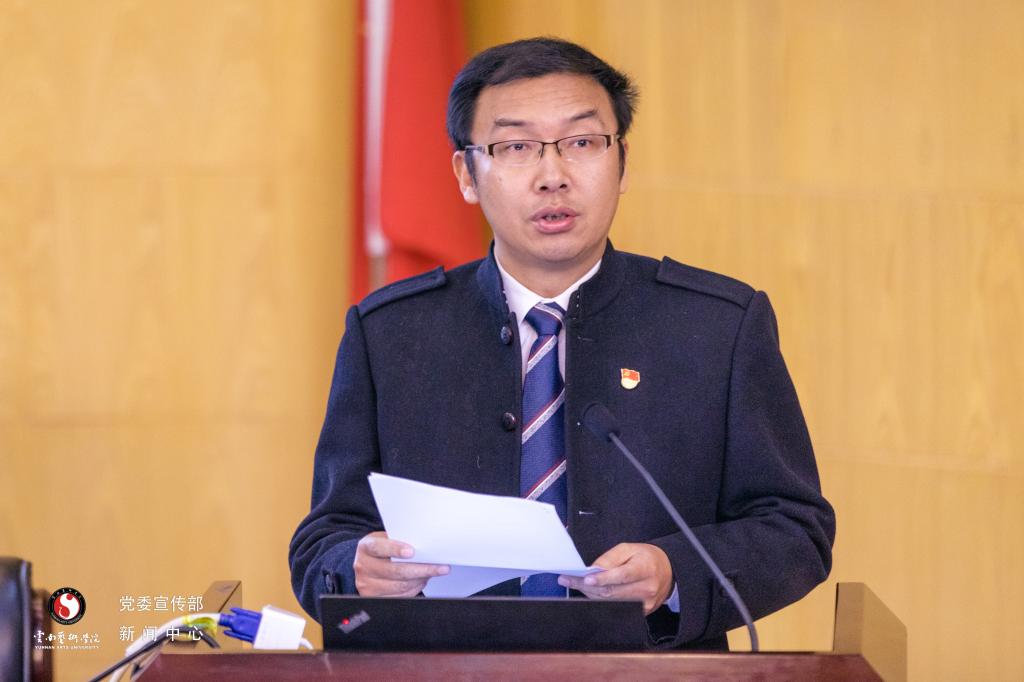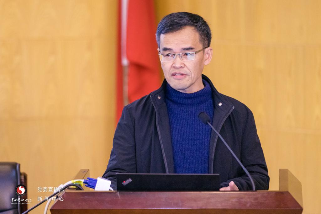 对外合作交流处处长侯云峰结合习近平主席在COP15领导人峰会主旨讲话,从人与自然的关系、保护与发展的关系、中国和世界的关系三个方面详细阐述了对习近平生态文明思想的学习认识。并结合我校在COP15云南省筹备办指导下,与全国设计“大师奖”组委会、中国电影美术学会联合举办“多彩·共栖”——基于生物多样性的全球美术与设计大赛的基本情况,分享了三点主要经验,即“加强顶层设计,实施高位推动”“主动作为、主动融入,切实履行和彰显高校服务社会职能”“聚焦办学定位,发挥学校办学优势”。