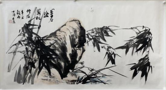 张立辰 《拳石幽兰配竹君》