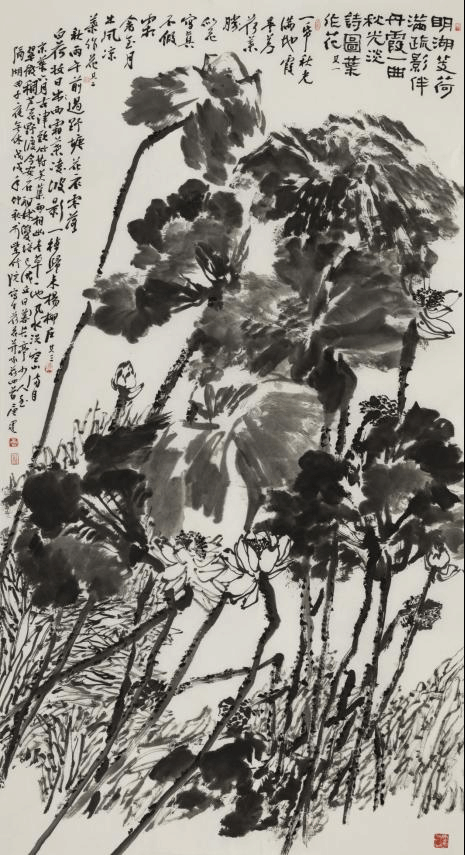 唐建 《明湖芰荷满 疏影伴丹霞》