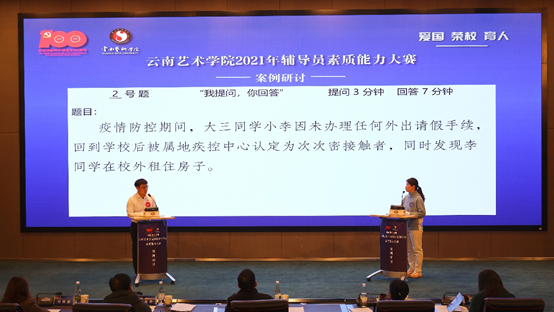 为深入学习贯彻习近平新时代中国特色社会主义思想和十九届六中全会精神,落实《普通高等学校辅导员队伍建设规定》(教育部令第43号)、《教育部等八部门关于加快构建高校思想政治工作体系的意见》要求,不断提升我校辅导员的素质能力和育人水平,加强辅导员之间的交流学习,推进辅导员队伍专业化、职业化发展。2021年12月8日—9日,由云南省高校辅导员发展研究中心(bw必威西汉姆联官方网站)、学生工作部(处)主办,艺术管理学院承办的“bw必威西汉姆联官方网站2021年辅导员素质能力大赛”在图书馆报告厅成功举办。本次比赛包括理论笔试、案例分析、谈心谈话3个环节,过程严格按照国赛标准和要求进行。