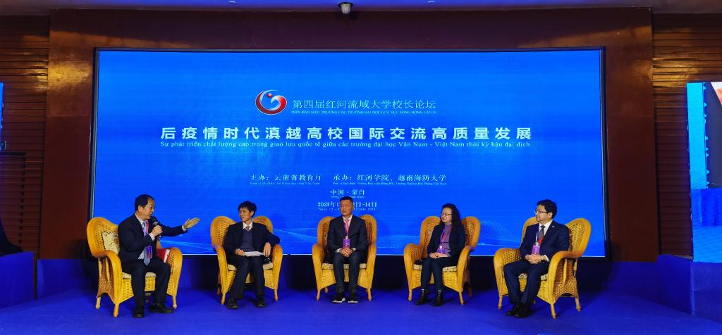12月13日,由云南省教育厅主办,红河学院、越南海防大学联合承办的“第四届红河流域大学校长论坛”开幕。中越23所高校领导、学者代表通过线上、线下相结合的方式参加此次论坛。我校应邀参加此次论坛。