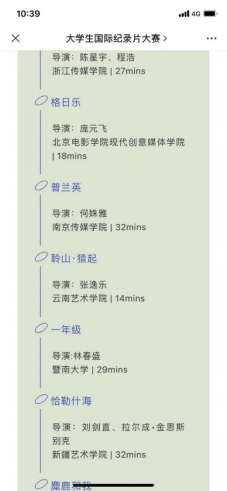 大学生国际纪录片大赛官方公众号截图