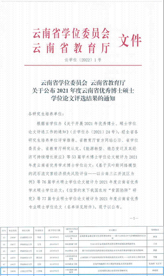 根据《云南省学位委员会 云南省教育厅关于公布2021年度云南省优秀博士硕士学位论文评选结果的通知》(云学位〔2022〕1号),我校2019届戏剧学院硕士研究生王梦施(导师:杨俊霞教授)的学位论文《应用戏剧实践目标的评价策略研究》被评为2021年度云南省优秀学术硕士学位论文。