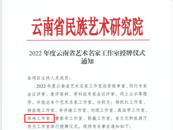 音乐学院院长林林教授的“林林工作室”获评2022年度云南省艺术名家工作室,全省仅评选出8个。