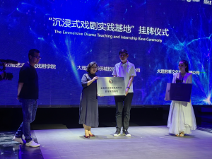 论坛结束后,我校戏剧学院院长杨军、华侨城大理公司总经理杨振亚及《幻境2099》总导演杨乐上台,为沉浸式实践基地举行揭牌仪式。双方共建的沉浸式戏剧实践基地正式启动。