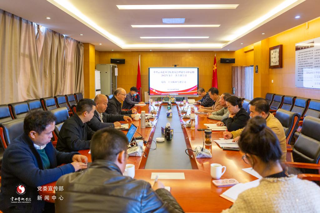 最后,李建宇书记高度评价了此次学习。他认为,学校党委班子成员学先一步、学深一步,结合工作实际做了深入的思考,从哲学的高度、文化的深度,学习的力度上都有体现。在接下来的工作中,要把党的二十大精神落实到全面建设具有鲜明特色的国内一流艺术院校的各项工作中,强化把握时代、面向未来的意识,强化胸怀大局、主动服务的意识,强化敬畏制度、严守纪律的意识,强化保证安全、维护稳定的意识,在全面建设社会主义现代化国家新征程中,实现自身的新发展,围绕新时代、新思想、新征程组织开展好师生的创作展演活动,加深对党的二十大精神的理解,更加生动形象地来深入学习宣传贯彻好党的二十大精神。