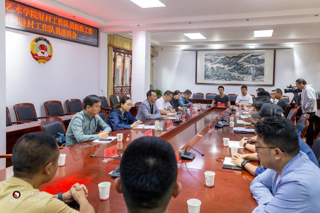 一段巍山行,一生巍山情。邓潇、曹辉作为驻村工作的老队员代表,分别进行了交流发言,对两年的乡村振兴工作进行了总结回顾,与新驻村工作队队员交流了经验。他们表示,两年的驻村工作,切实的“走进了中国深处”,践行了“实事求是”,学会了“联系群众”,驻村工作的点点滴滴磨砺了心性,人民群众的质朴笑容净化了灵魂,巍山深厚的文化底蕴滋养了身心,田间地头的烈日锤炼了体魄。驻村工作队通过发挥乡村振兴临时党支部的战斗堡垒作用,通过发挥驻村工作队分工会的孵化服务作用,依托学校资源,积极开展支部共建、捐资助学、艺术师资培训、美育支教、产品包装设计、红色教育基地打造、文旅设计、大学生“三下乡”、人居环境美化提升、乡村规划设计、消费帮扶、组织慰问演出等各类帮扶活动。他们认为,团结是驻村工作队顺利开展工作的坚实基础,希望新队员经常交心谈心、加强沟通联系,营造和谐融洽的同志式关系,建立血浓于水的战友情,形成工作队心齐气顺、风正劲足的和谐局面。