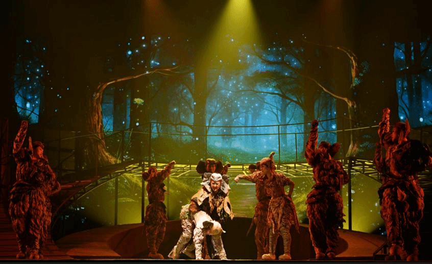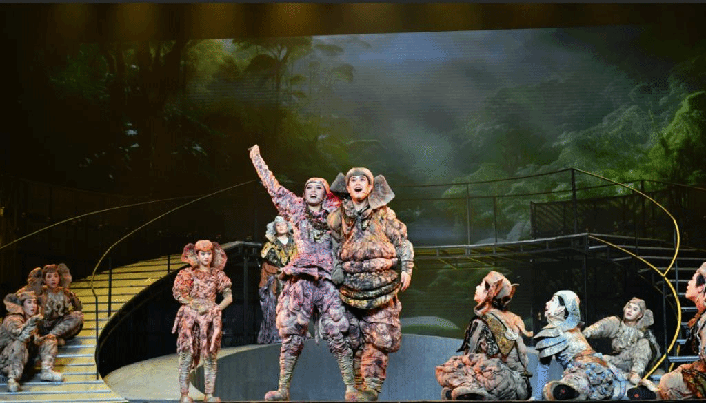 儿童剧《象北旅行》围绕“2021年野生亚洲象远距离迁徙活动”进行改编创作,将“热点的事件”与“艺术的美感”相结合,戏剧表演、儿童歌舞和唯美现代的多媒体技术舞台元素,让人眼前一亮。在剧作风格和舞台表现样式的呈现上,该剧的主创、演员们力求探寻“儿童题材”展演形式的新突破,因而赋予其一定的“百老汇歌舞剧”色彩。这在“儿童题材”舞台剧的表现风格和样式上,是国内戏剧舞台中具有开创性意义的首次突破。创作团队旨在增强“儿童题材”戏剧的观赏性和对少年儿童的吸引力,让他们在充满趣味性和娱乐性中接受生态文明教育。