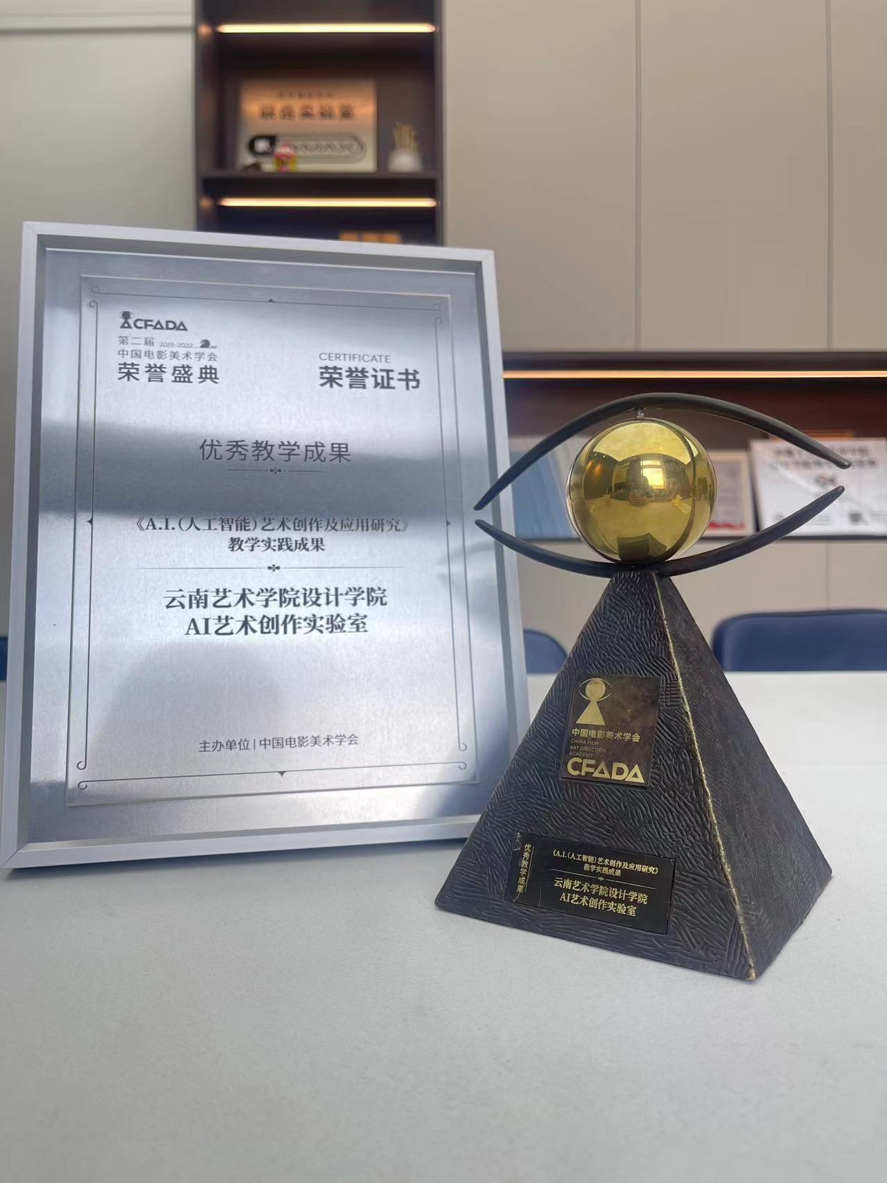 2023年,bw必威西汉姆联官方网站设计学院A.I.艺术创作实验室的《A.I.(人工智能)艺术创作及应用研究》教学实践成果获第二届中国电影美术学会优秀教学成果奖。