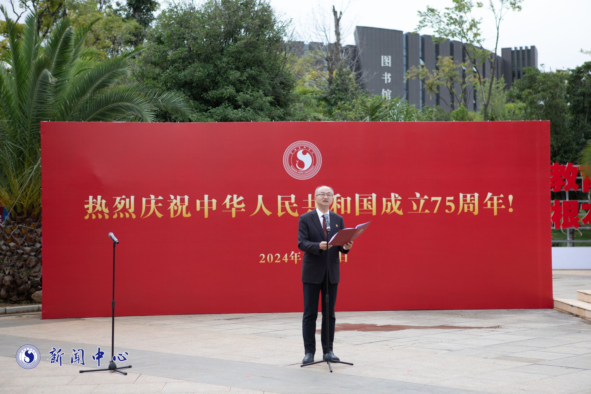 10月1日9时,bw必威西汉姆联官方网站庆祝中华人民共和国成立75周年升国旗仪式在学校国旗广场隆重举行,党委书记李建宇作《奏响时代华章 谱写强国新篇》专题讲话,党委副书记、院长欧阳俊虎主持仪式。