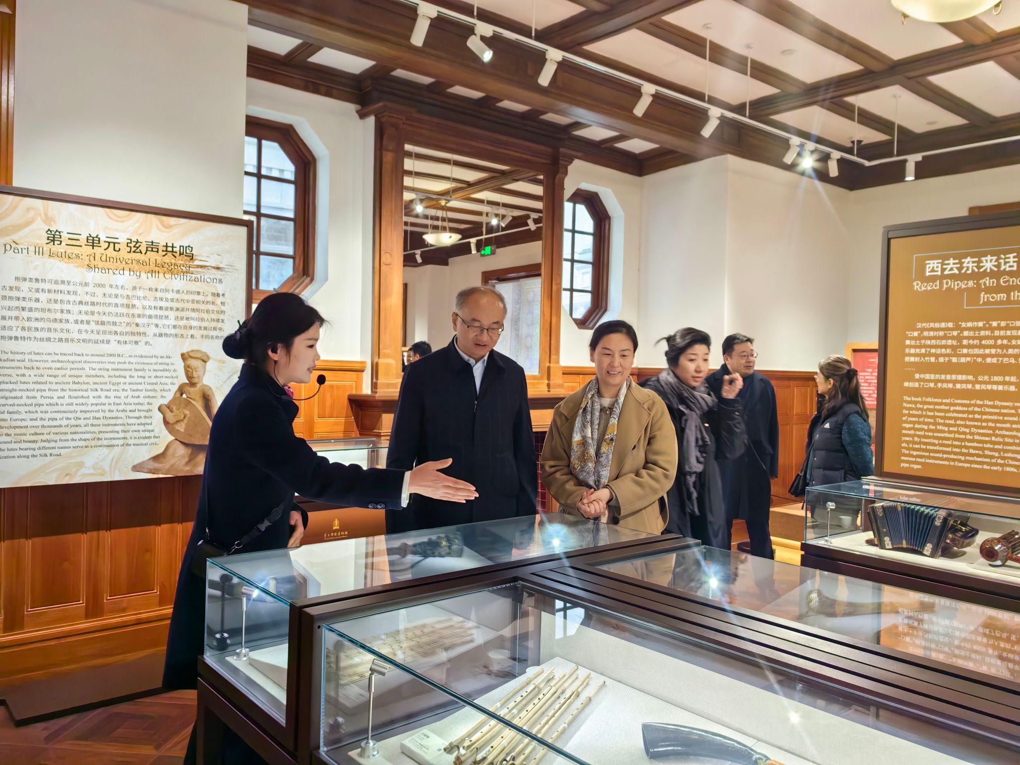 在上海音乐学院,李建宇一行参观了校史馆、乐器博物馆、校内保护建筑。上海音乐学院党委书记裴小倩陪同参观并介绍有关情况。