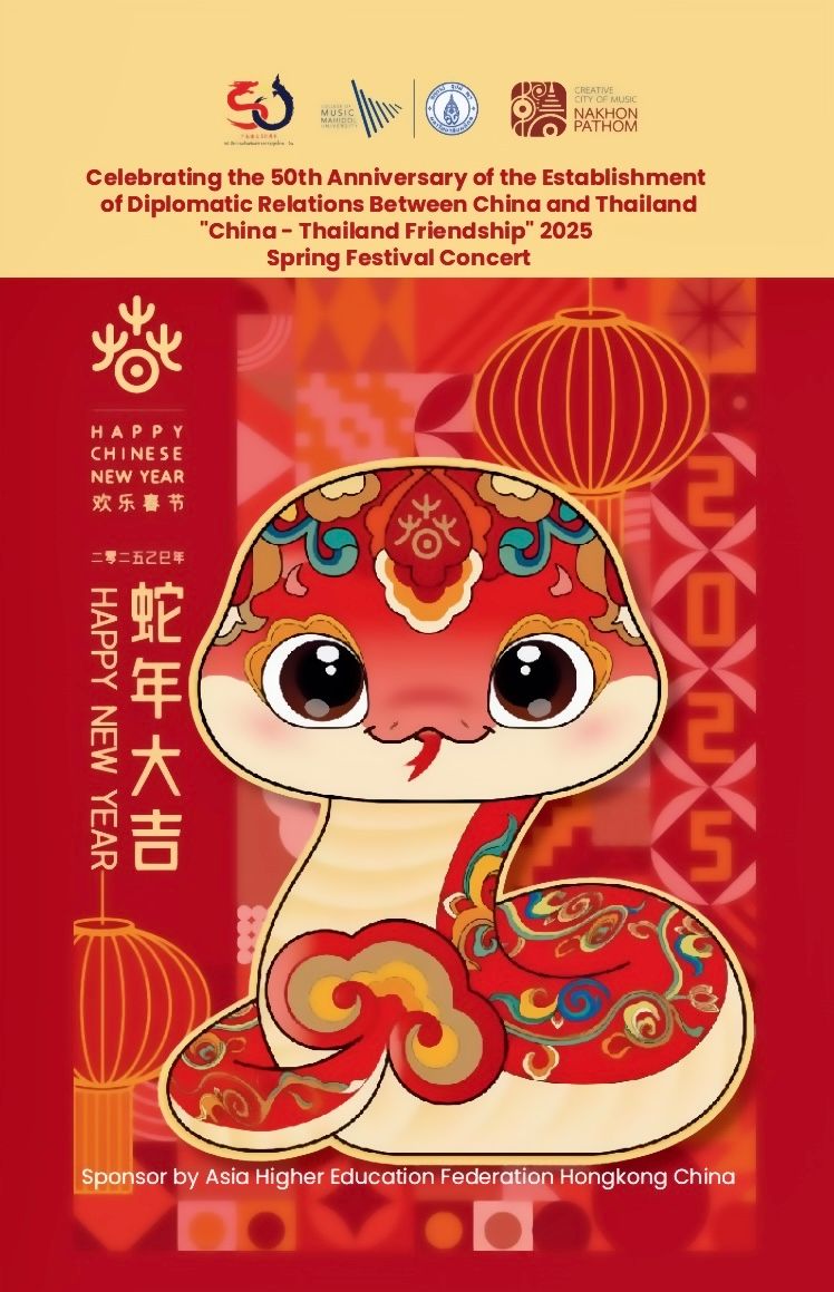 2025年1月14日,bw必威西汉姆联官方网站音乐学院师生应邀赴泰,与泰国玛希隆大学、东方大学联合举办了“中泰建交50周年——‘中泰友谊’新春音乐会”。音乐会被纳入中国文化和旅游部“全球欢乐春节”活动。中国驻泰国大使韩志强、中国驻泰国大使馆公使衔参赞常禹萌、国际奥委会委员、泰国爱乐乐团董事会主席坤仁帕塔玛出席音乐会。