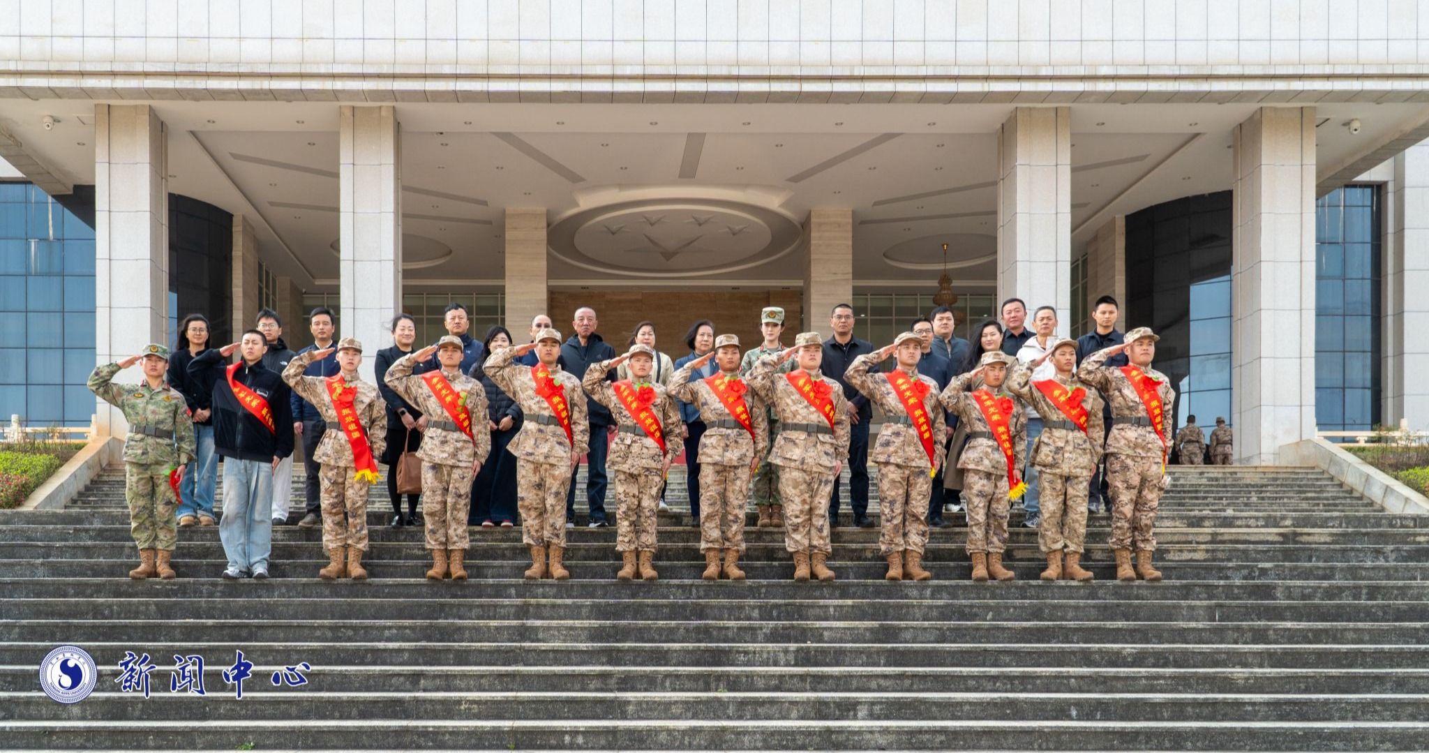 武装部专职副部长邵清友宣布新兵名单及兵源去向。新兵代表农驰、冷晨阳、杨烨、孟祥涛发言,表达了投身军旅的坚定决心和对未来的憧憬;二级学院副书记和辅导员代表送上祝福,入伍新兵孟祥涛家长希望他们在部队遵守纪律、努力成长。活动最后,学校为新兵颁发承载师生情谊与期望的入伍纪念品。