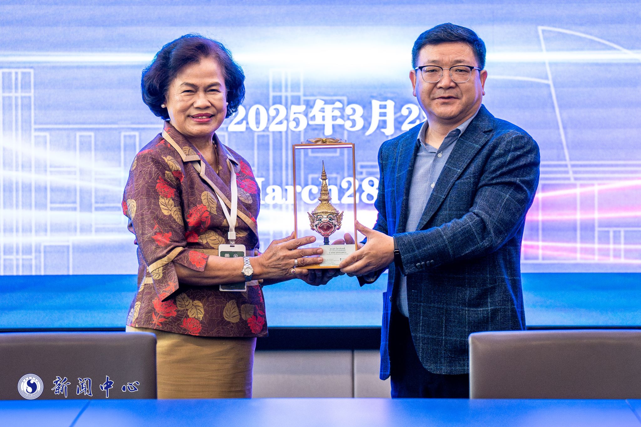 欧阳俊虎与尼帕·索帕散丽互赠纪念品。蒋锋致欢迎辞。