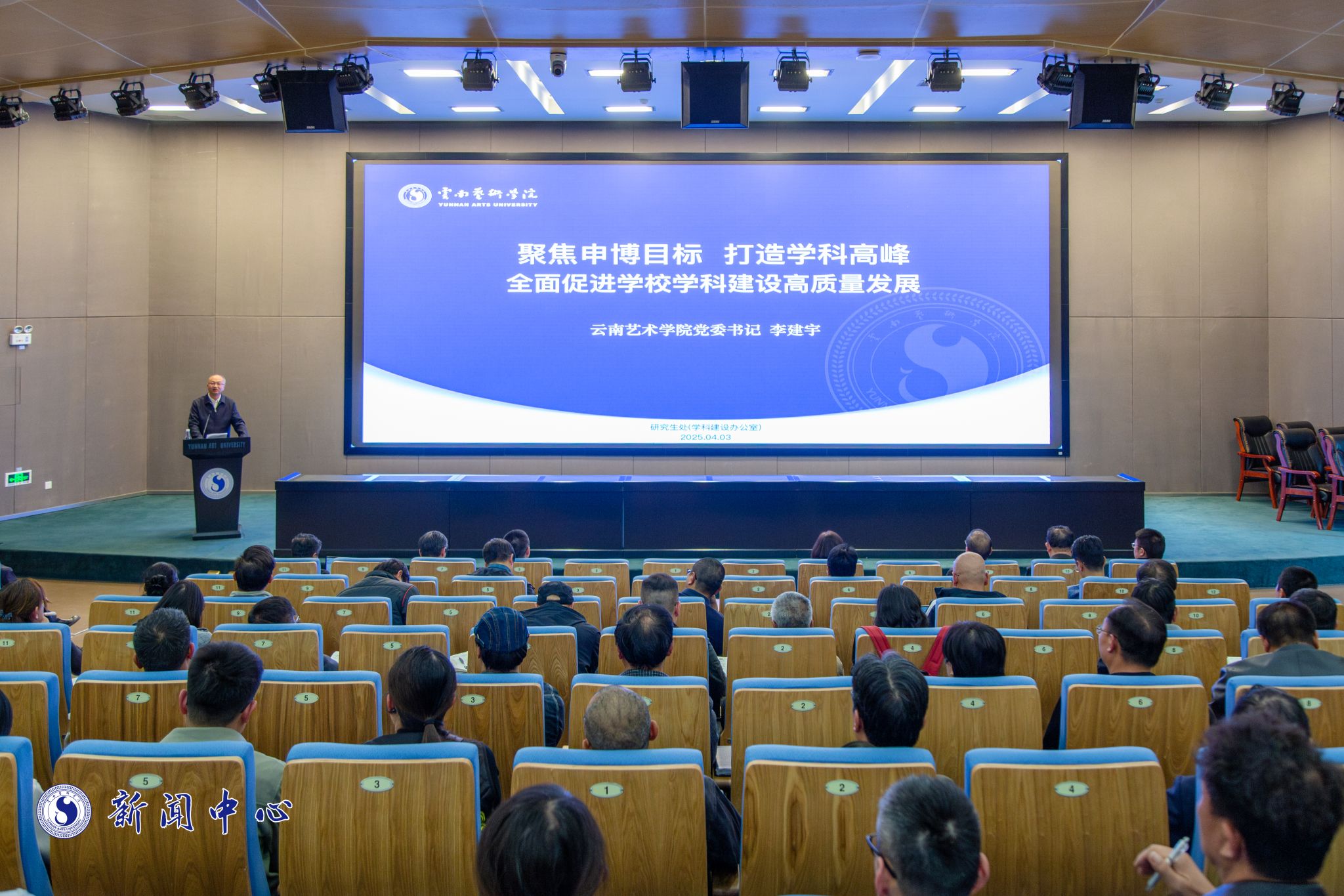 二是突出重点、精准发力,找准推动学科建设和申博工作的着力点、突破口。要在师资队伍上下功夫。坚定不移实施人才强校战略,实施更加积极、更加开放、更加有效的人才政策,重点引进和培养领军人物、学科带头人等高层次人才,加快形成人才队伍“雁阵格局”;健全人才培养、引进、使用、评价、激励机制,让人才“引得来、留得住、发展好”,为学科建设提供强有力的人才支撑。要在人才培养上做文章。对接学科前沿与产业需求,深化“课程—实践—创作”融合培养模式,增设交叉学科课程,推动研究生参与国家级展演、重大科研项目,在实践中提升创新能力。强化导师责任制,完善培养质量监控体系,培育更多省级以上优秀学位论文和教学成果奖,打造具有云艺辨识度的教育品牌。要在科学研究上求突破。加强纵向科研项目的培育、孵化和申报,争取更多标志性重大项目立项。加强横向课题引入,支持跨学科协同创新,推动艺术创作与学术研究双向转化。深入落实科研经费管理改革政策。抓好重点科研平台建设,积极开展高水平创作展演,产出一批“传得开、留得下、叫得响”的优秀文艺作品。要在培养条件上出实招。加强硬件建设,完善资源配置机制,建立学科建设动态评估体系,实现资源向优势学科、重点方向精准投放。以国家战略需求和人工智能发展为牵引,探索“艺术+人工智能”的路径,推进人工智能赋能教育教学和管理全过程。