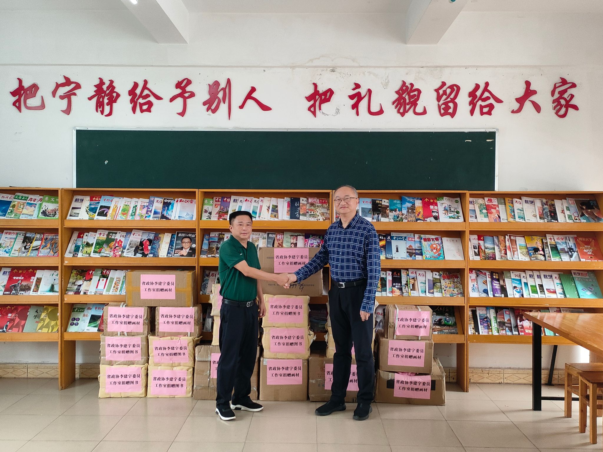 本次捐赠图书1800册,价值122000余元,涉及文学、艺术、科学技术等各个方面,涵盖了不同的学科和领域;画材价值14000余元,为我校美育浸润计划支教师生及驻点学生美术课提供了长期的原料保障。