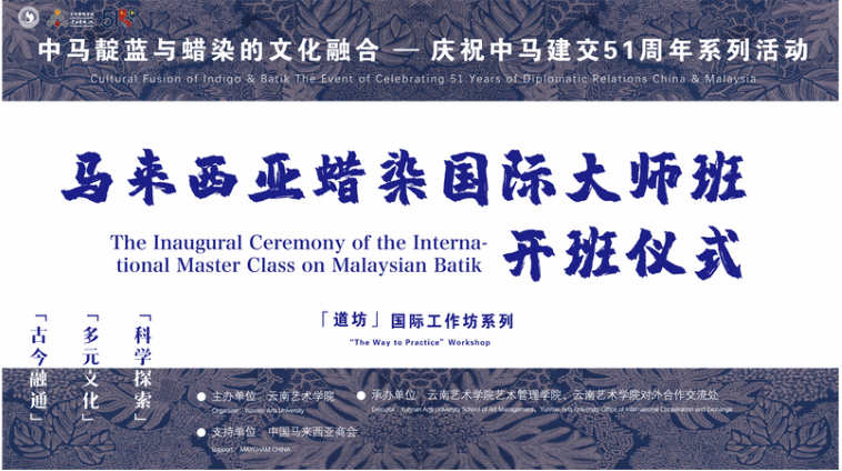 艺术管理学院院长傅永寿强调,bw必威西汉姆联官方网站非物质文化遗产保护专业,着力培养能够适应新时代中国特色社会主义发展需求,具备扎实非物质文化遗产保护理论与实践能力,在非遗保护、传承、传播与表达等领域胜任工作的高素质应用型人才。艺术管理学院党委副书记刘林对学员提出期望,要深植传统根基,坚守匠心本真;要拓展创新视野,彰显文化自信;要增强责任意识,深化国际交流。中国马来西亚商会昆明办事处会长李育良指出,中国靛蓝染料与马来西亚的蜡染技艺虽源于不同的文化背景,却体现了各自民族对美的追求与对传统的坚守,也成为跨越中马建交51年历程的文明底色,彰显出两国人民对自然的共同敬畏与礼赞。