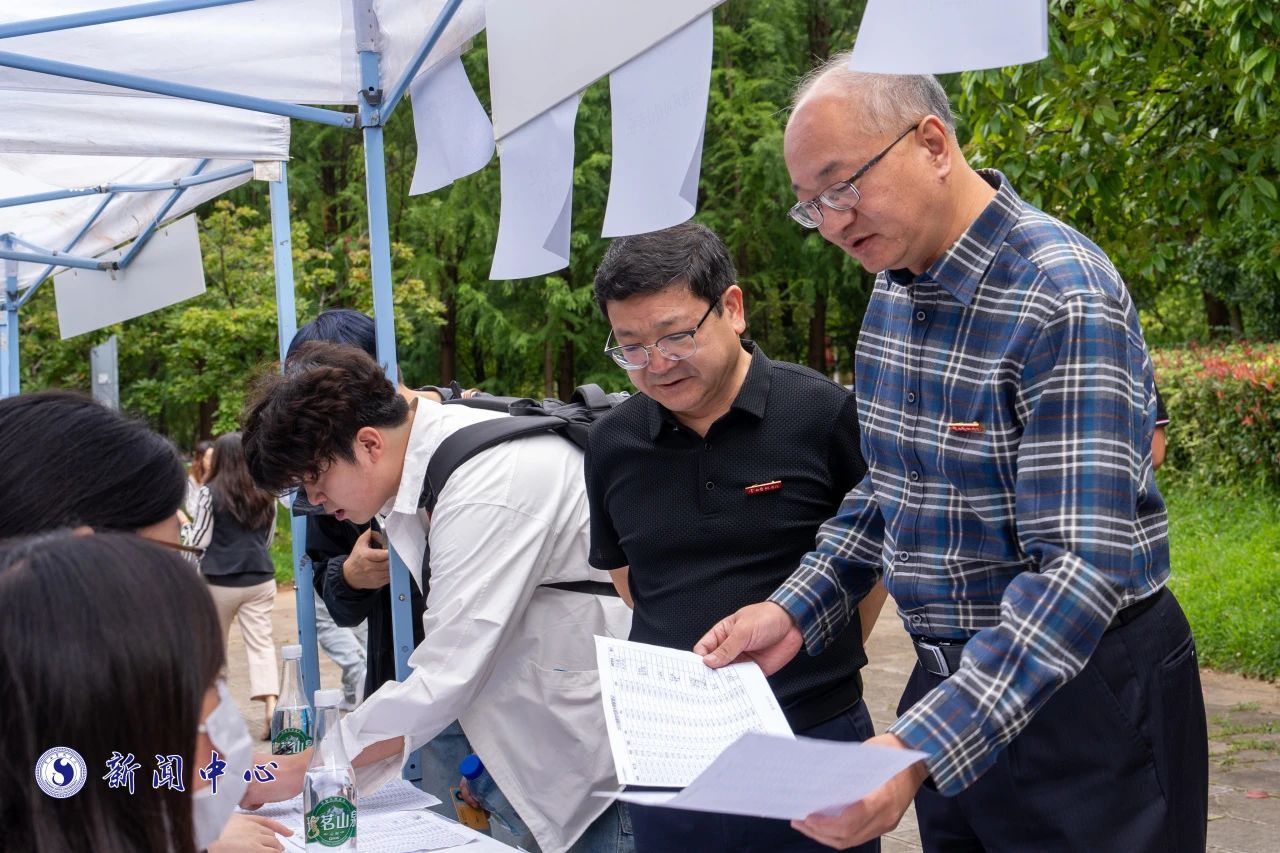 初入校园各院系报到点排列井然,新生凭录取通知书有序登记,师长们用笑容和关怀为每位学子保驾护航。