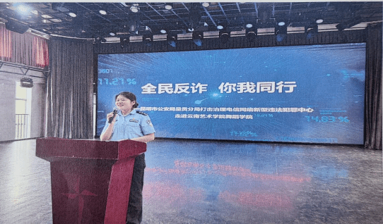 为进一步增强师生安全防范意识,提升网络安全素养,有效预防和遏制电信网络诈骗案件的发生,切实保障学生人身与财产安全,保卫处联合呈贡公安分局,在各学院的大力支持下,先后分9场对我校2025级全体新生开展了以“全民反诈,你我同行”为主题的安全教育讲座。本次讲座特邀昆明市公安局呈贡分局民警进行授课,聚焦当前高发的网络诈骗及违法活动,结合真实案例,深入剖析了常见的典型诈骗类型及应对方法。