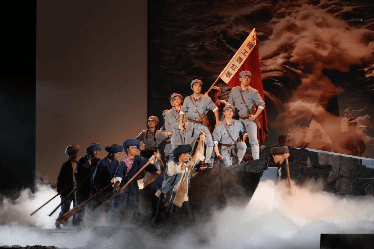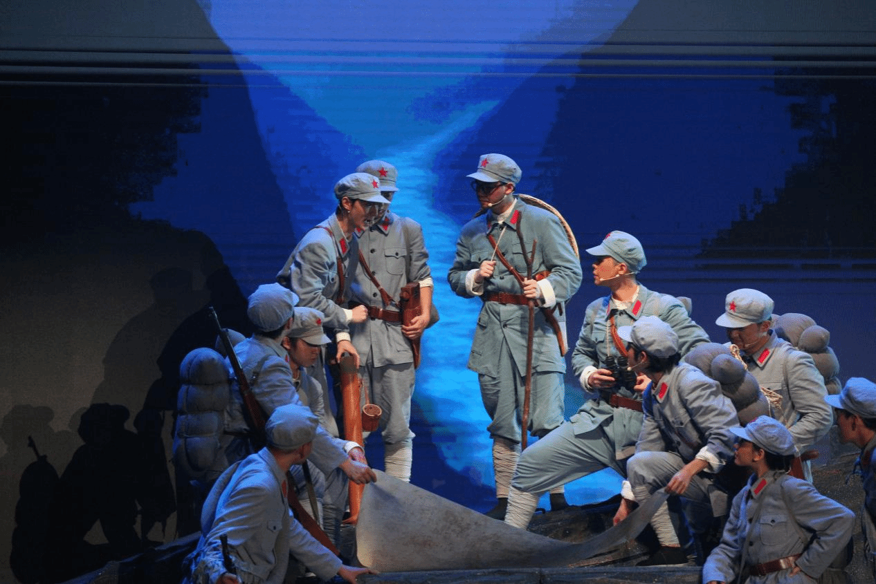 伴随着雄壮浑厚的背景音乐响起,话剧在金沙江汹涌澎湃的水花中拉开帷幕,官兵们在声、光、电等特效的交融衬托下身临其境,走进了那段温暖厚重的历史。