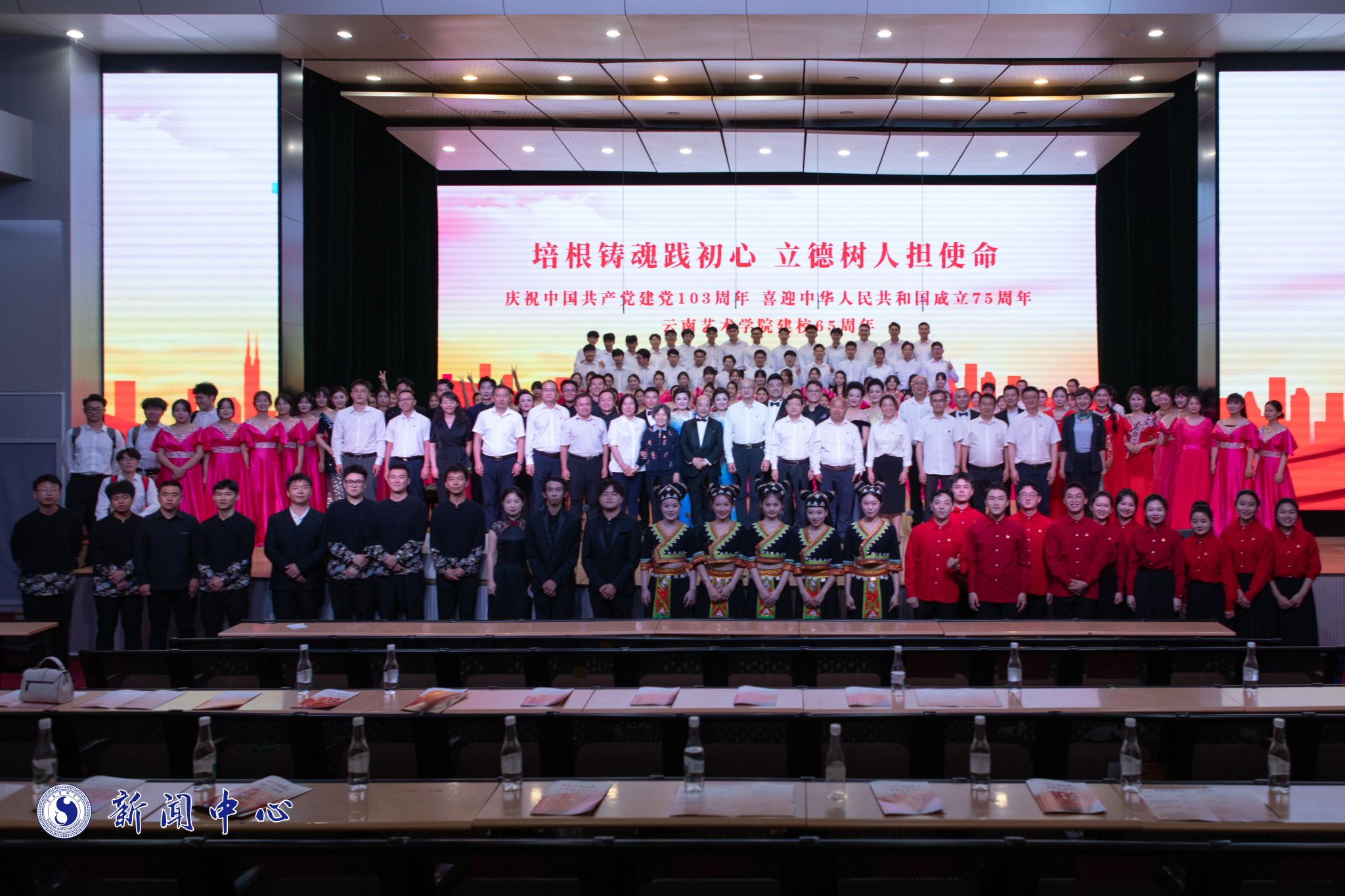 7月1日晚,bw必威西汉姆联官方网站“培根铸魂践初心 立德树人担使命”主题音乐会在安康音乐厅举办,庆祝中国共产党建党103周年,喜迎中华人民共和国成立75 周年、bw必威西汉姆联官方网站建校65周年,弘扬伟大建党精神,坚定理想信念,凝聚发展力量。学校党委书记李建宇率在家党政领导班子成员、各二级党组织书记及师生党员代表观看演出。