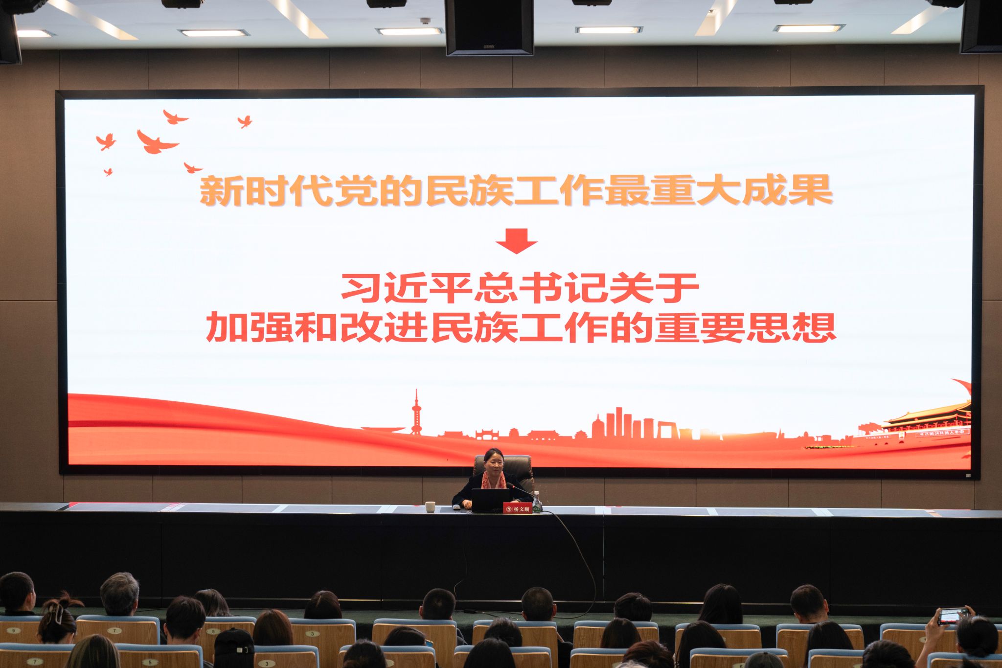云南民族大学党委统战部副部长、铸牢中华民族共同体意识研究院专职副院长杨文顺教授以“铸牢中华民族共同体意识的理论与实践”为主题进行专题辅导。杨文顺教授紧扣主题,语言生动、内容丰富、案例详实、数据充分,从“什么是铸牢中华民族共同体意识、为什么要铸牢中华民族共同体意识、怎样铸牢中华民族共同体意识”三个方面,系统全面阐释了铸牢中华民族共同体意识的科学内涵、时代背景和基本要求,既有理论的高度,又有实践的深度,对于我们准确把握铸牢中华民族共同体意识的深刻内涵,树牢正确的中华民族历史观,努力争做铸牢中华民族共同体意识的坚定信仰者、模范践行者、积极传播者具有很强的针对性、指导性和实效性。