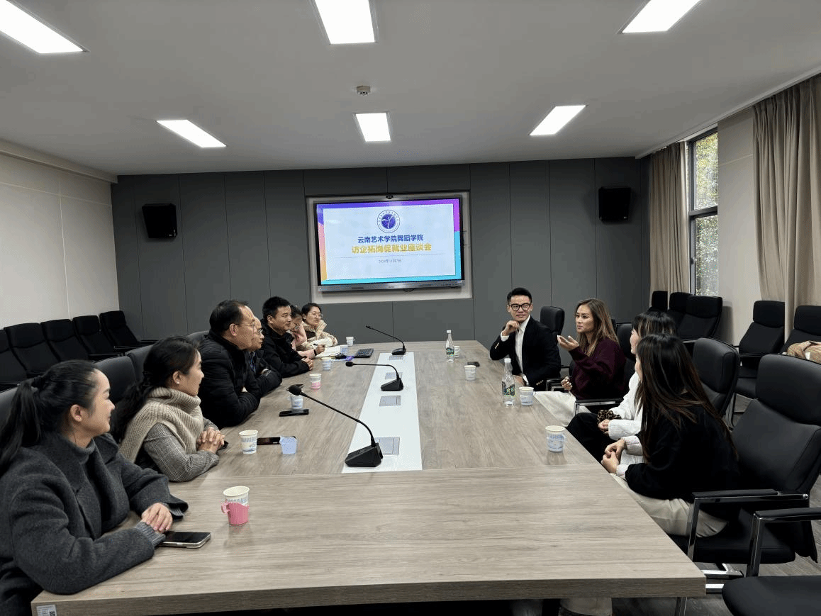 舞蹈学院与北京舞研艺美教育咨询有限公司、永善县溪洛渡文化演艺有限公司等7家单位开展访企拓岗促就业座谈会,各用人单位有关负责人参加座谈