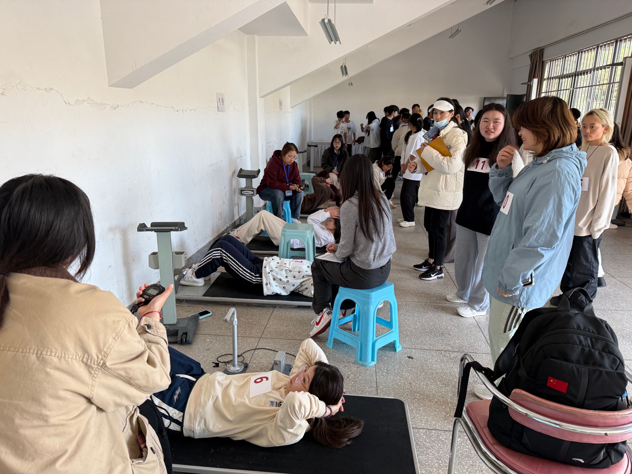 2024年11月21日,由国家教育部选派的湖南师范大学体能测试专家团队一行6人来我校进行2024年国家学生体质健康测试抽测复核工作,测试任务由校教务处、体育教学部负责协助专家组完成。专家组随机抽取我校各个二级学院学生共350余名进行体能测试7个项目的抽测复核。