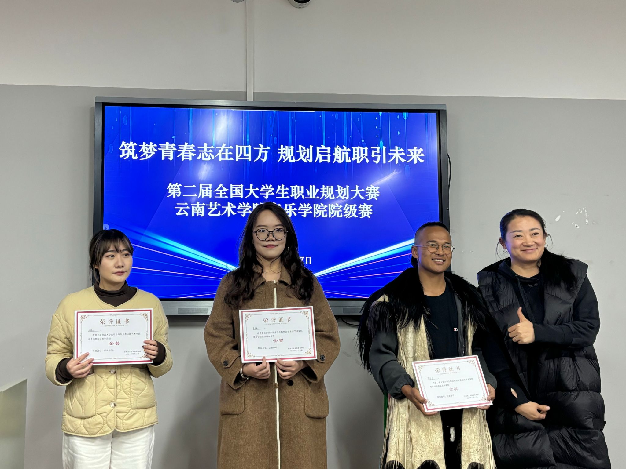 为帮助学生树立生涯规划意识和正确的就业观念,以科学的态度和方法尽早规划自己的职业生涯,提升学生的生涯规划能力和求职技能,促进毕业生高质量充分就业。音乐学院于2024年12月17日举办了主题为“筑梦青春志在四方,规划启航职引未来”的大学生职业规划大赛院级赛,全体辅导员和100余名学生代表现场观摩了比赛。