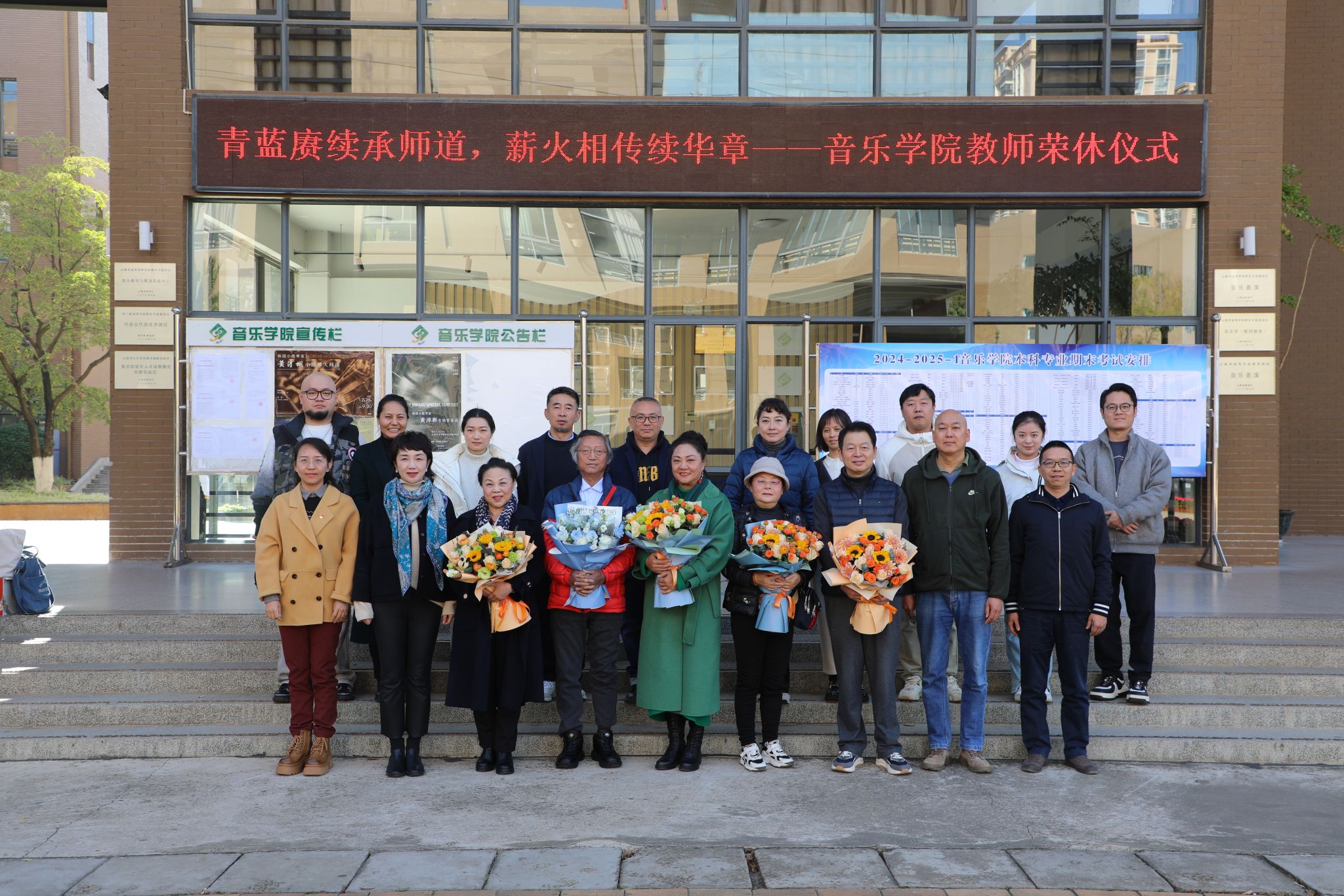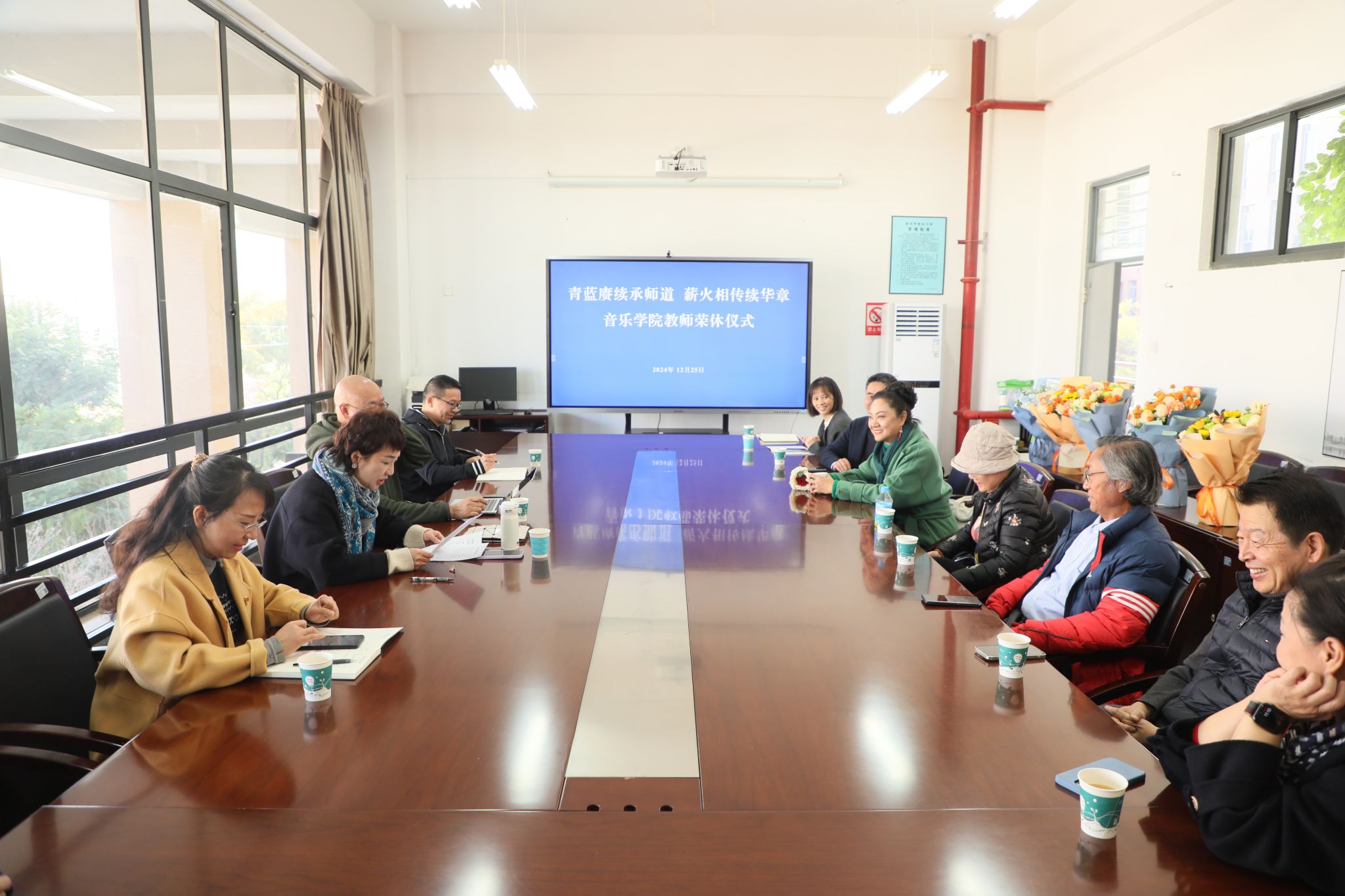 2024年12月25日上午,音乐学院在A301会议室召开荣休教师座谈会。音乐学院全体党政领导、年度荣休教师、系主任和青年教师代表参加了座谈会,会议由音乐学院党委副书记、院长林林主持。