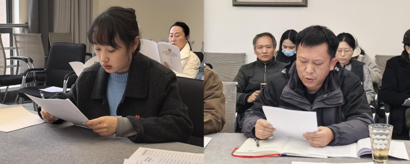会上,由美术学院党委副书记何君同志、美术学院学生管理科辅导员杨玲清同志、美术学院办公室字鹏同志分别领学了《国家主席习近平发表二〇二五年新年贺词》《中共中央政治局召开民主生活会 习近平主持会议并发表的重要讲话》《深刻领悟习近平总书记关于文艺工作的重要讲话和重要指示批示精神》三篇材料。