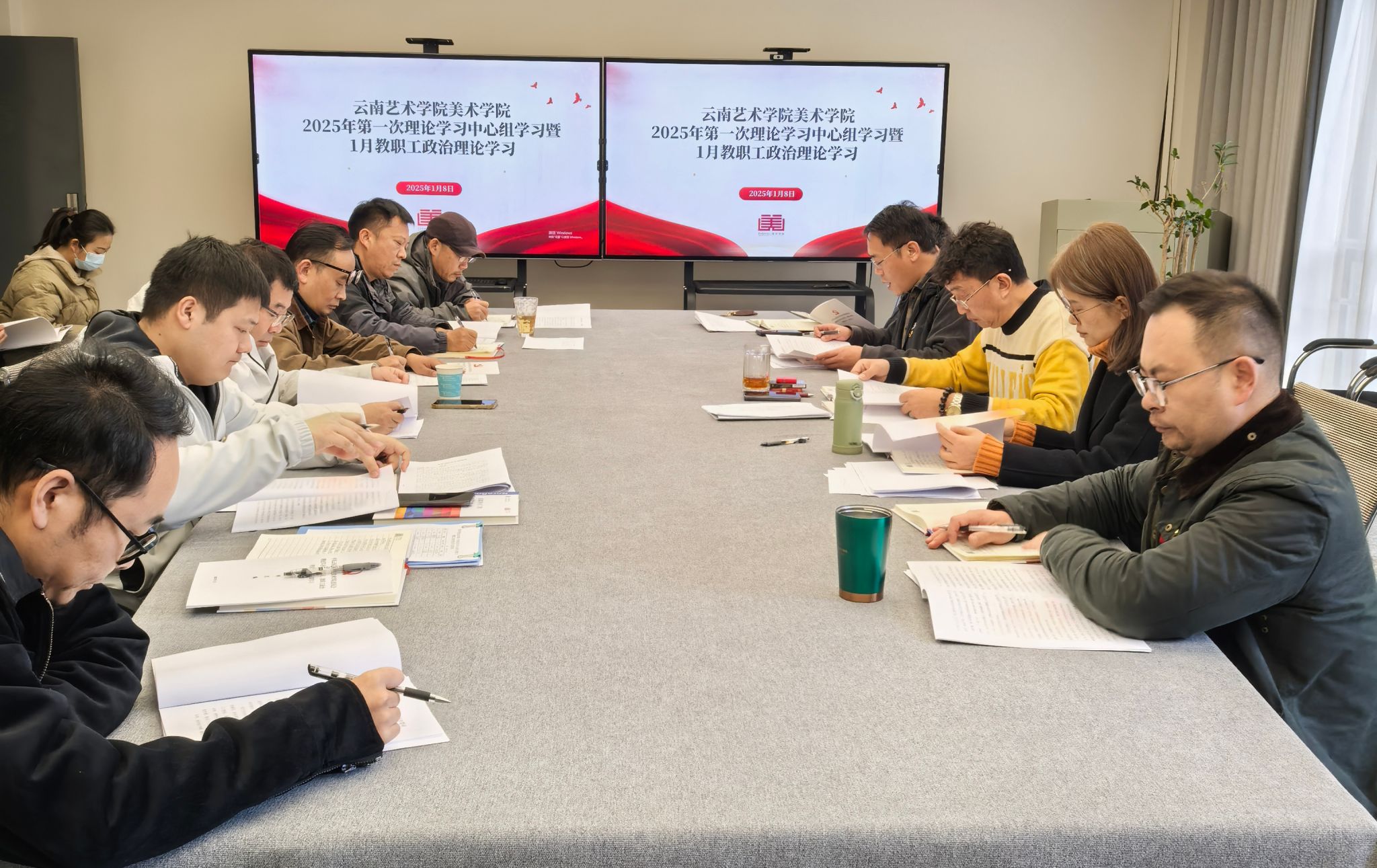 bw必威西汉姆联官方网站美术学院2025年第一次理论学习中心组学习暨1月教职工政治理论学习于2025年1月8日在美术学院221会议室举行,学习贯彻习近平总书记在中央政治局民主生活会上的重要讲话精神以及深刻领悟习近平总书记关于文艺工作的重要讲话和重要指示批示精神。本次学习由美术学院党委书记刘恩权主持学习,美术学院党政班子成员、科级干部(系主任)、党支部书记、全体行政人员参加了此次学习。
