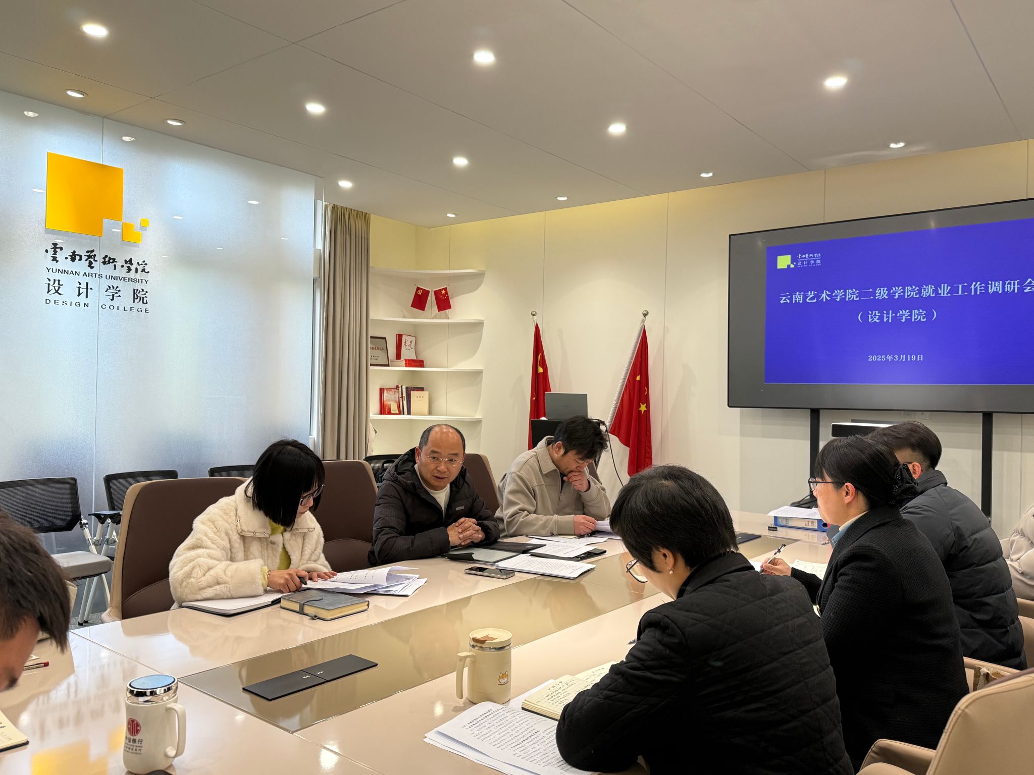 2025年3月19日上午,bw必威西汉姆联官方网站学生工作部(处)副部(处)长邵清友一行3人到设计学院洽谈就业创业工作。设计学院党委副书记欧阳继梅、辅导员参加。