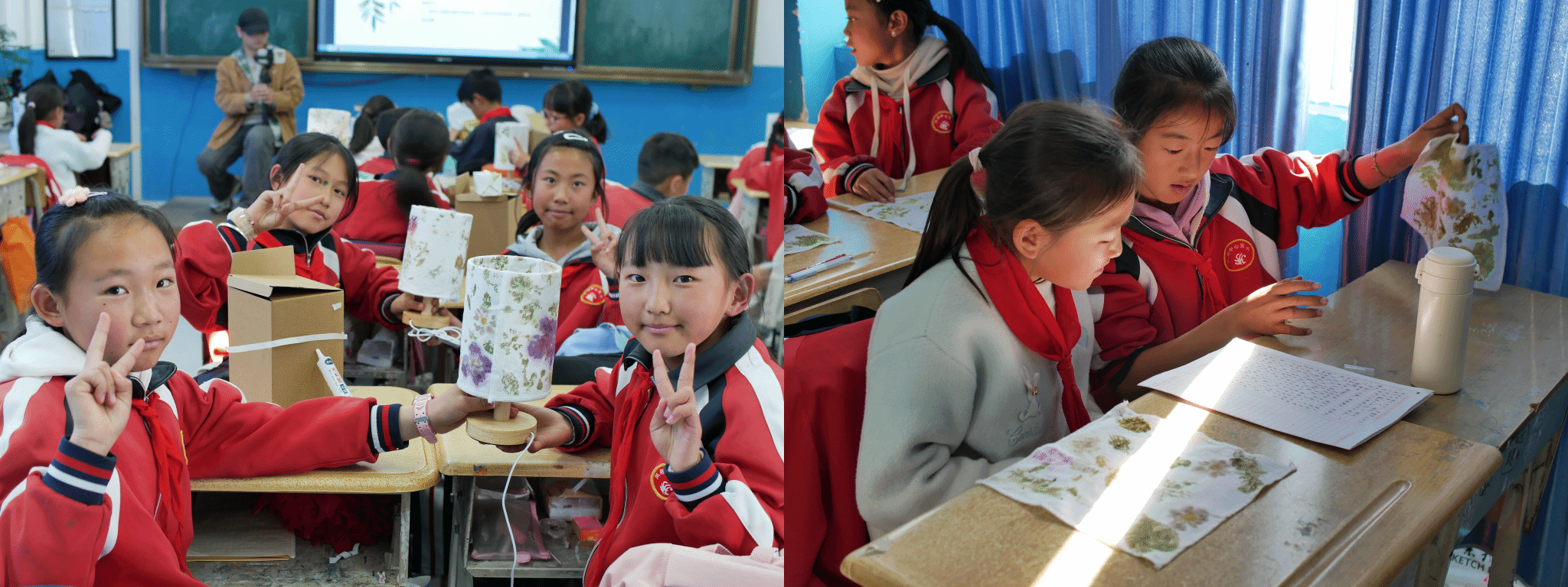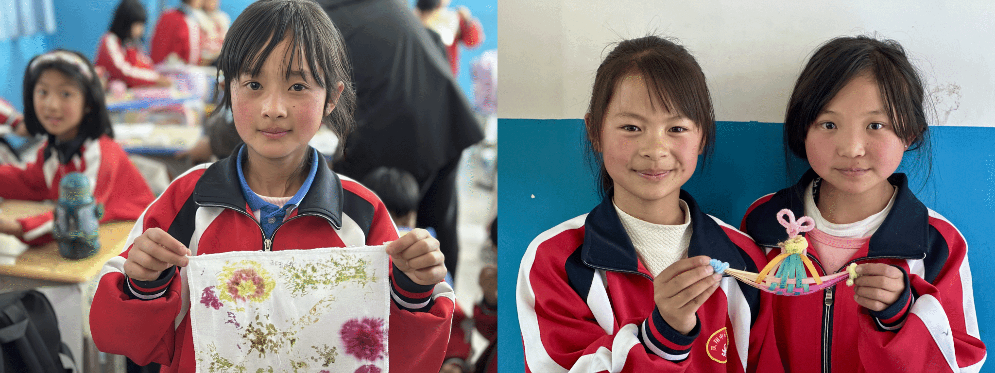 2025年3月,“博想学团”第八期乡村美育志愿服务社会实践活动在大理白族自治州洱源县凤羽镇凤翔小学开展。此次活动以“艺术赋能成长”为核心理念,为凤羽镇的180余名孩童带来了丰富多彩的美育课程。团队通过“理论研习+实践创作+文化传承”的三维育人模式,结合当地非遗文化资源,将传统手工艺转化为生动的教学载体,创新开发了“白族扎染工作坊”“甲马艺术体验营”等特色课程,孩子们兴致勃勃地参与到竹编、扎染、甲马、剪纸艺术等传统技艺的学习中,触摸着乡土文化的根脉,还在自然美学探索课程中,以山川草木为课堂,用自然美术激发创造力,领略世界的缤纷多彩。