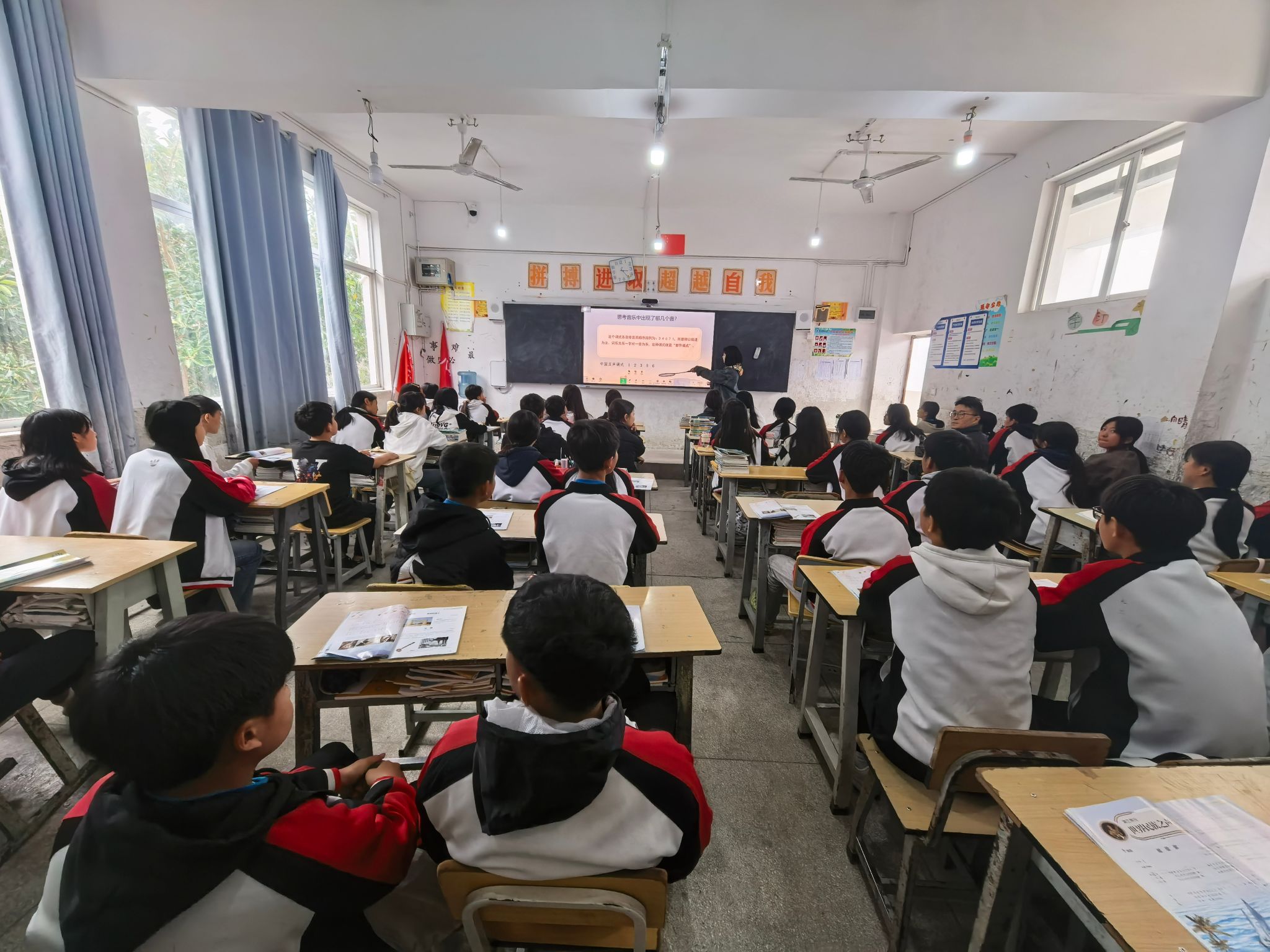 3月25日,带队教师前往红河二中开展听课教学实践,并与支教学生交流教学经验,探讨教学方法等。姜娇兰为八年级7班讲授“世界民族之声”,课后以点歌互动激发学生兴趣,课堂反响热烈。