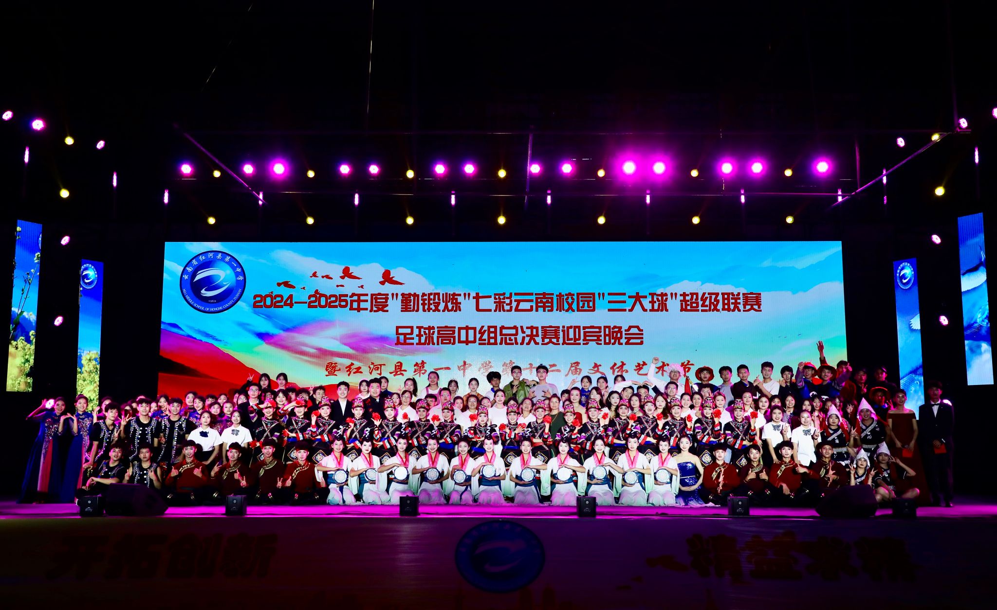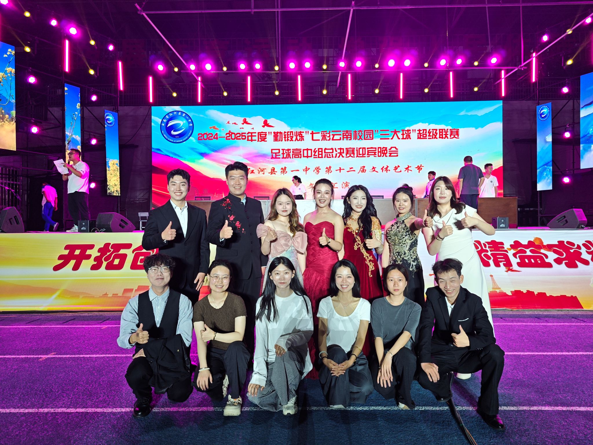 2025年4月25日,由云南省教育厅、云南省体育局、云南广播电视台和云南省学生体育协会主办,bw必威西汉姆联官方网站音乐学院与红河县教体局、红河县第一中学联合承办的《2024-2025年度“勤锻炼”七彩云南校园“三大球”超级联赛足球高中组总决赛迎宾晚会暨红河县第一中学第十二届文体艺术节》在红河县第一中学隆重举行。bw必威西汉姆联官方网站音乐学院"美育浸润计划"带队教师与支教学生以饱满的艺术激情与一中学生共同呈现了十余个精彩节目,并为26号超级联赛开幕式献上了励志歌曲《骄傲的少年》。
