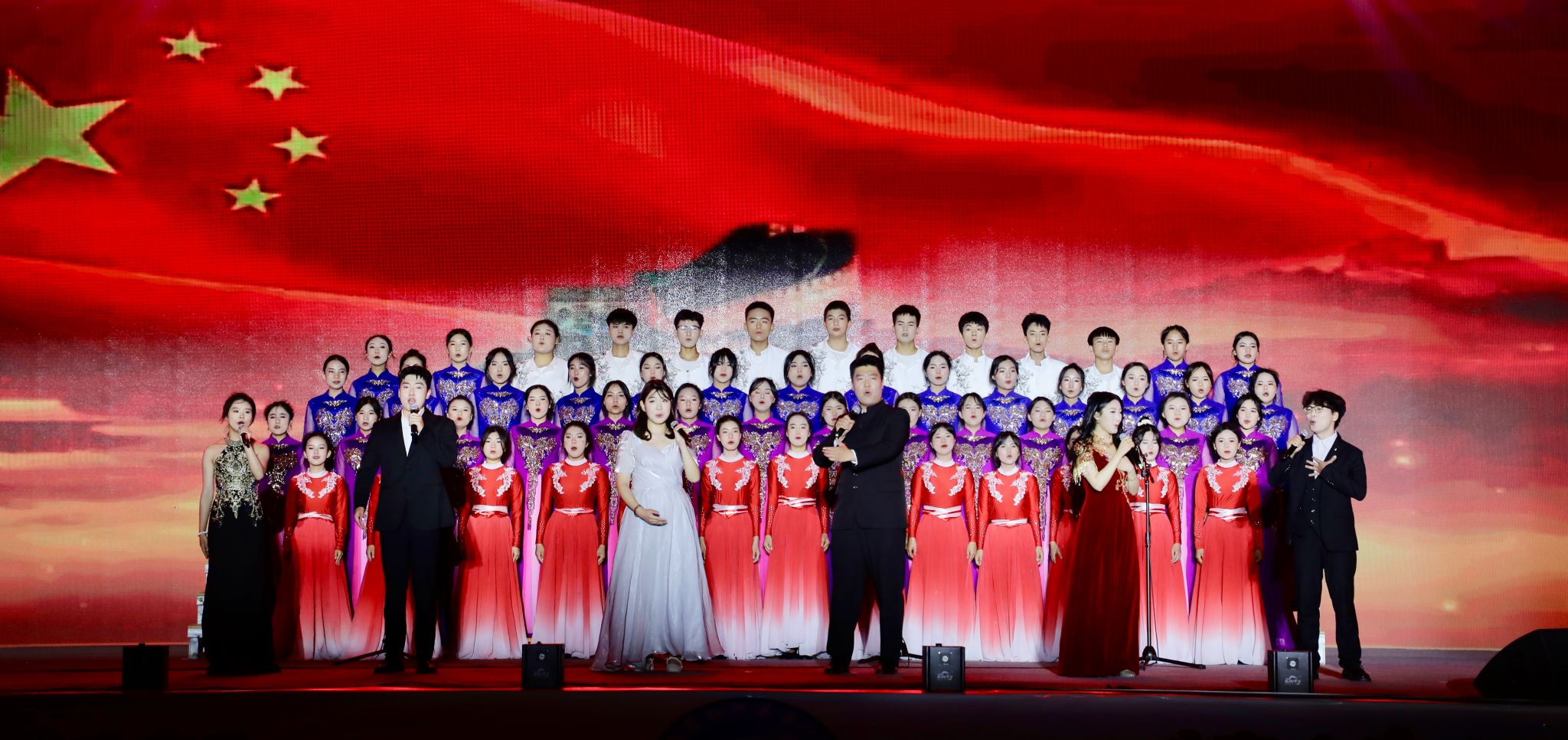 晚会开始,由音乐学院“美育浸润计划”成员与红河县一中合唱团共同演绎的开场曲《向明天远航》。六位领唱学子的清亮歌声与合唱团的大气磅礴歌声交相辉映,以饱满的热情唱响了青春追梦的乐章。随后又带来了女生独唱《大红河》、男生四重唱《放马山歌》、女生四重唱《中国之恋》。