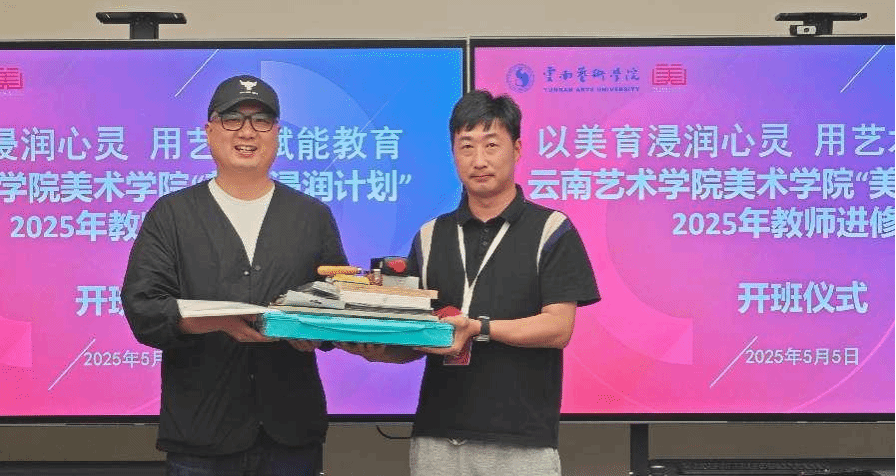 优秀校友、鲁轩教育云南校区校长关利萌,向进修学员代表捐赠画材。