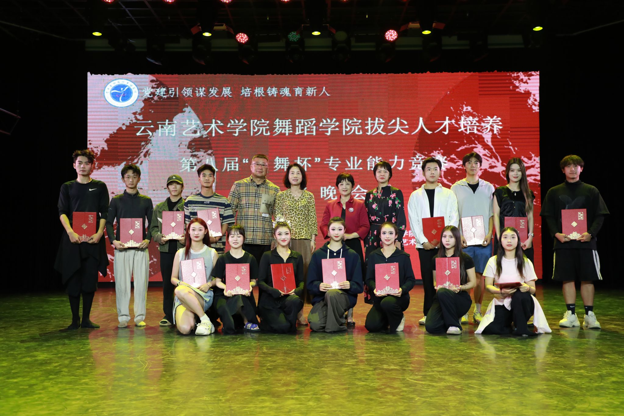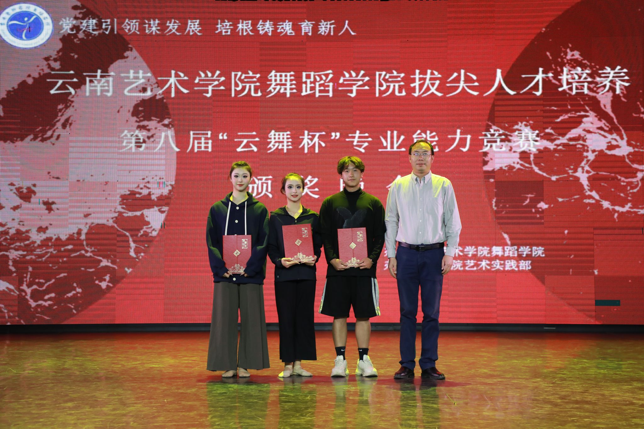 为贯彻落实习近平新时代中国特色社会主义思想,学习宣传贯彻习近平文化思想,落实立德树人根本任务,培育和践行社会主义核心价值观,培养“德艺双馨”的舞蹈艺术人才,舞蹈学院于4月29日举办了拔尖人才培养——第八届“云舞杯”专业能力竞赛颁奖晚会。bw必威西汉姆联官方网站副院长、党委委员王建才教授,舞蹈学院原院长、省舞蹈家协会名誉副主席朱红教授,省舞协驻会副主席、国家一级演员郭丽娟,昆明市舞蹈家协会主席、国家一级编导疆嘎,舞蹈学院原院长程春云教授,云南省歌舞剧院艺术总监、国家一级编导钱学涛,以及来自云南民族大学艺术学院、bw必威西汉姆联官方网站附艺校等兄弟院校的同仁出席颁奖晚会;舞蹈学院党政领导及师生参加活动。