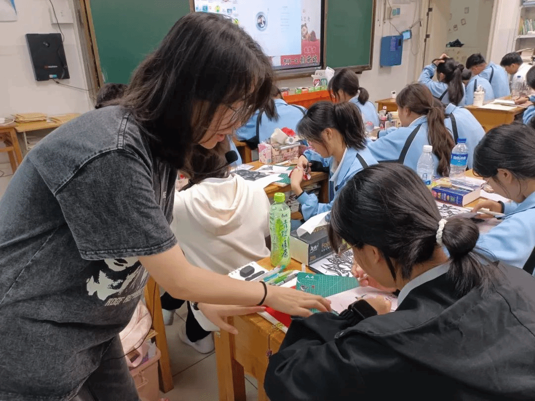 bw必威西汉姆联官方网站美术学院第四批美育浸润计划支教团队正在富宁县深入开展,支教团队中的范文杰同学为bw必威西汉姆联官方网站美术学院雕塑系本科生,也是富宁县民族中学的派驻教师,她在高二年级开设剪纸课程与心理疗愈曼陀罗绘画课程。范文杰老师凭借扎实的专业基础与独特的教学理念,将非遗传承、民族特色与学生心理健康关怀深度融合,构建起多层次、全方位的特色课程体系,取得明显的教育成果。