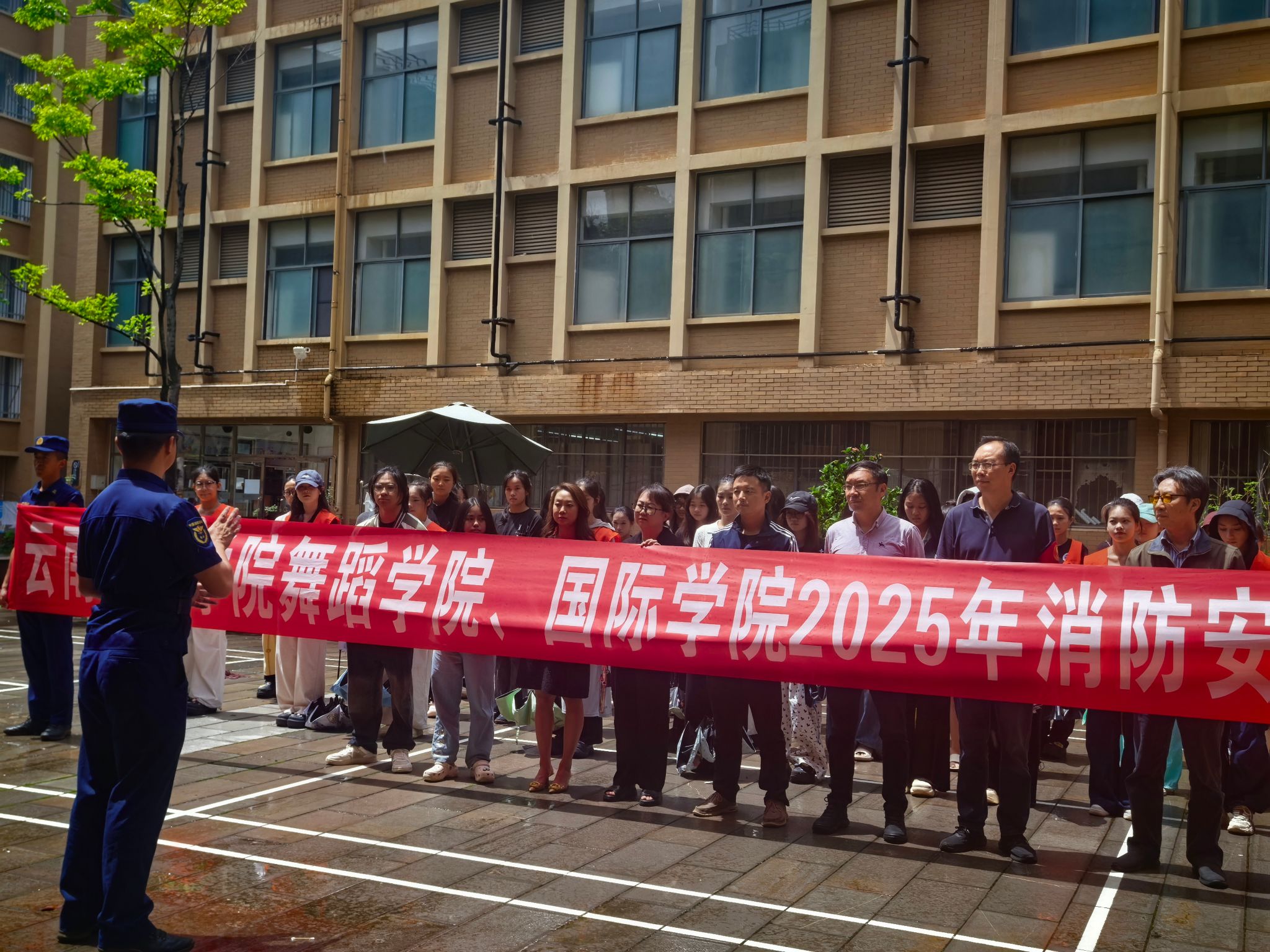 为预防和减少火灾事故的发生,进一步提高师生安全意识和自防自救能力。2025年6月27日,在学校保卫处消防安全科的支持与帮助下,舞蹈学院、国际学院师生顺利开展了2025年校园综合应急疏散演练暨校园消防安全知识培训活动。