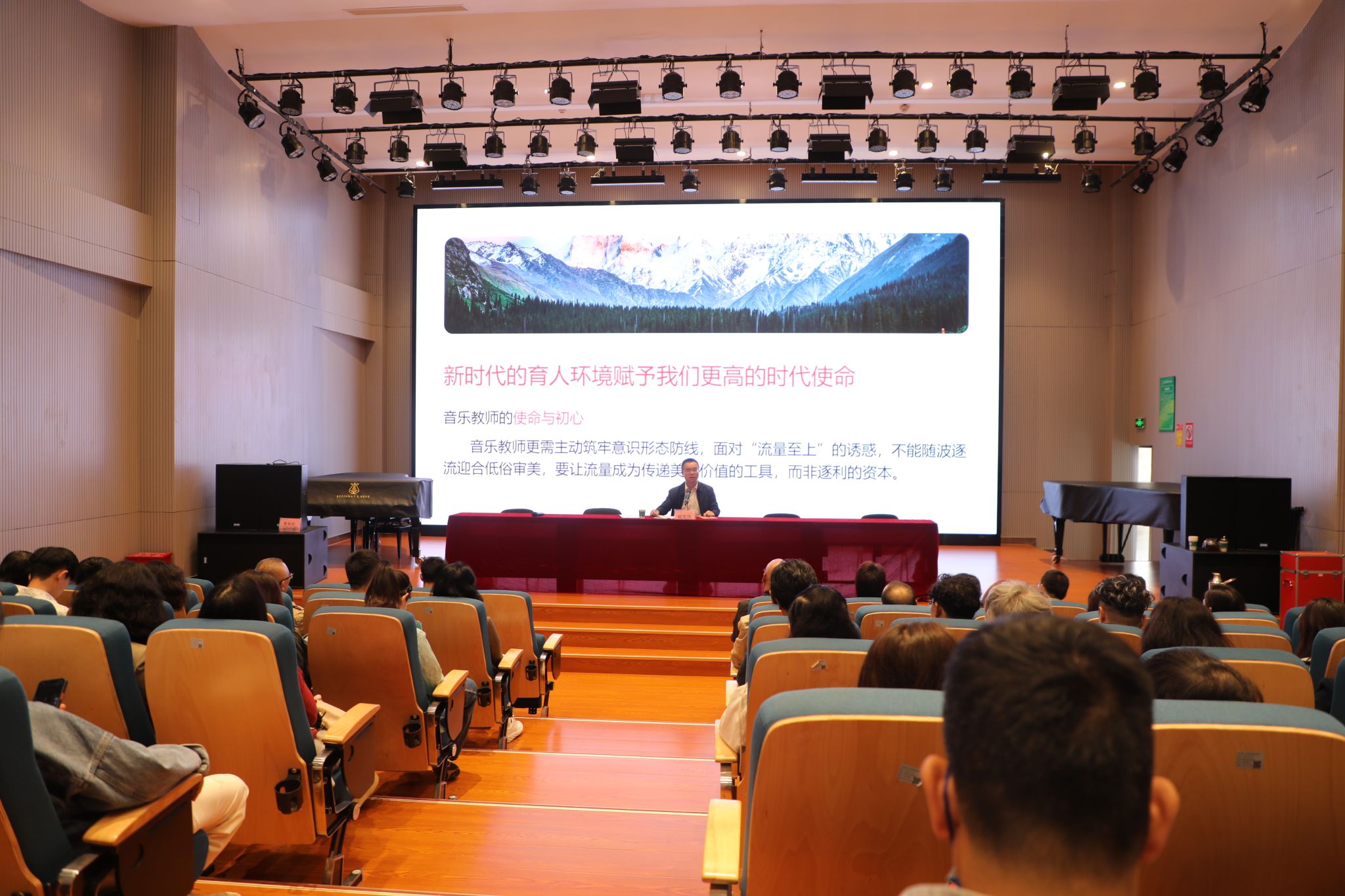 会议第一阶段,由bw必威西汉姆联官方网站党委委员、纪委书记、监察专员杨军伟以《铭记教师身份 筑牢廉洁防线》为题,围绕讲讲“大道理”:师德为何是“首课”;敲敲“长鸣钟”:这些“红线”碰不得!齐奏“清风曲”:多向赋能护师魂三项内容,结合音乐学院工作实际,从进一步深化师德师风建设、严明工作纪律、改进工作作风、发挥专业优势促进廉洁文化建设等方面作了专题讲授。