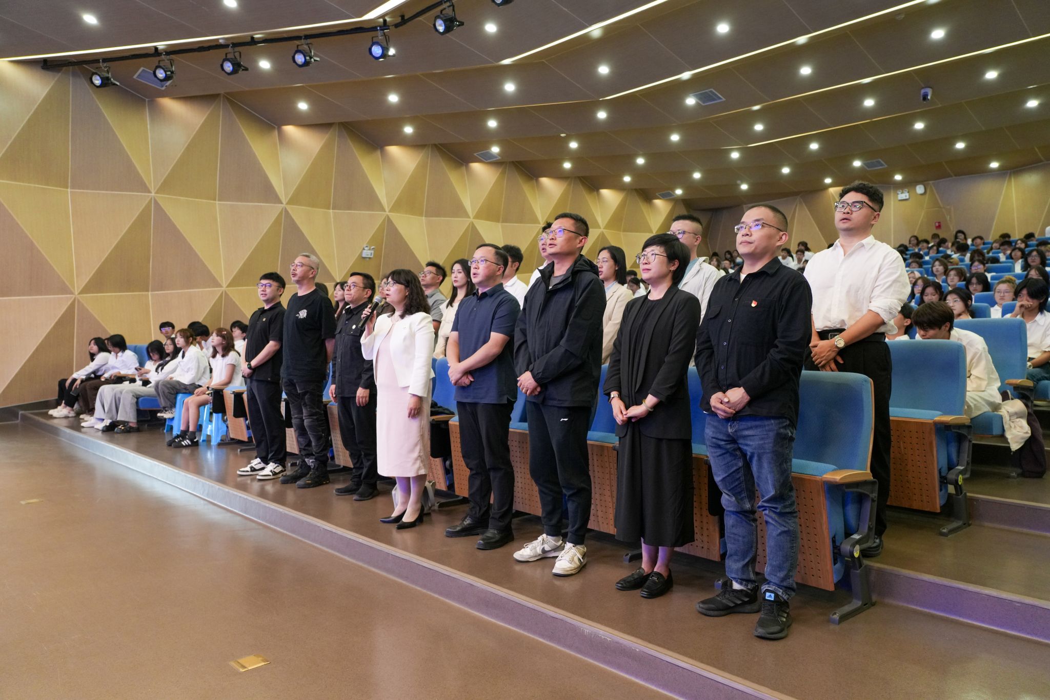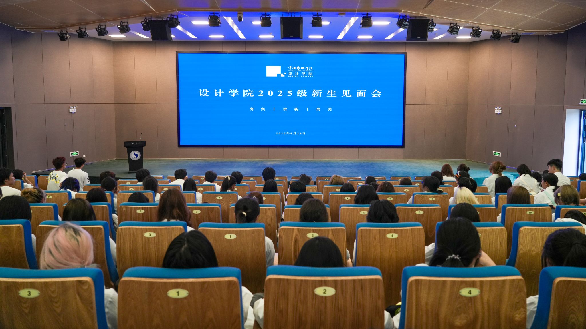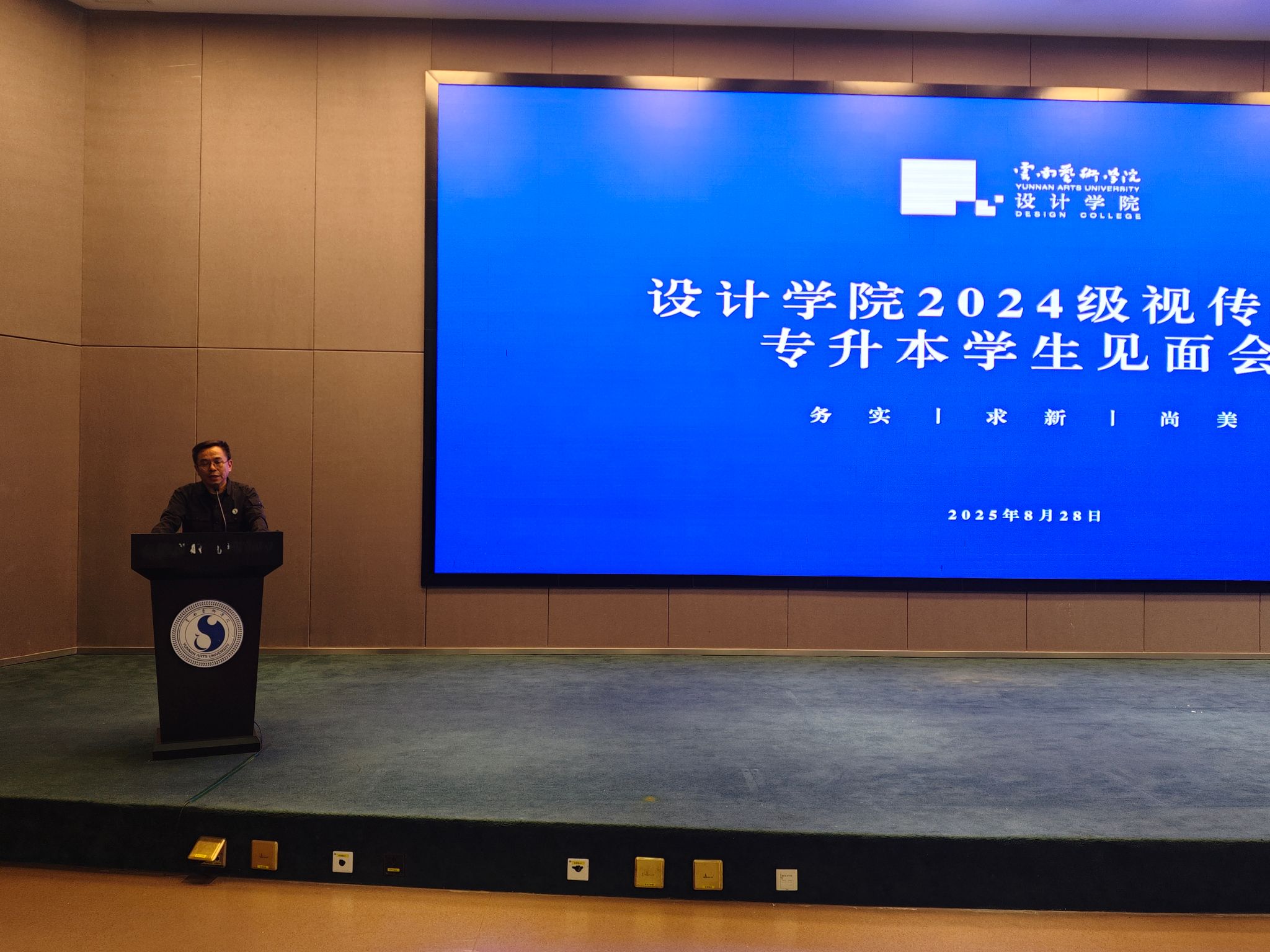 2025年8月28日下午,设计学院2025级新生暨2024级视觉传达专业专升本学生见面会,在图书馆报告厅举行。设计学院党政领导、各专业系部主任、各科室负责人、全体辅导员、2025级新生班主任,以及2025级新生、2024级视觉传达专业专升本学生共同参加,会议由设计学院副院长杨凌辉主持。