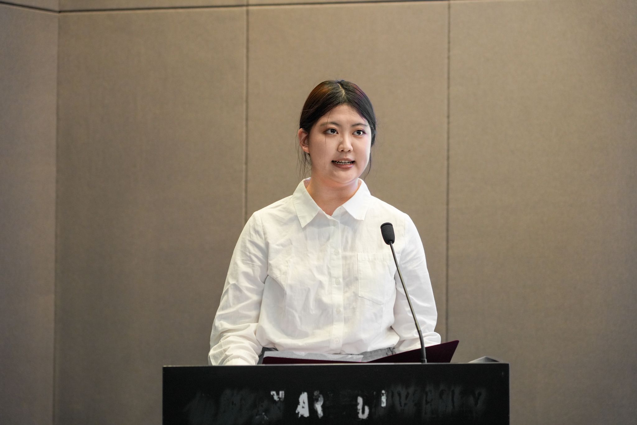 2025级新生代表环境设计2班刘珂妤代表全体新生,表达了立志争做有理想、敢担当、能吃苦、肯奋斗的新时代好青年的志向。