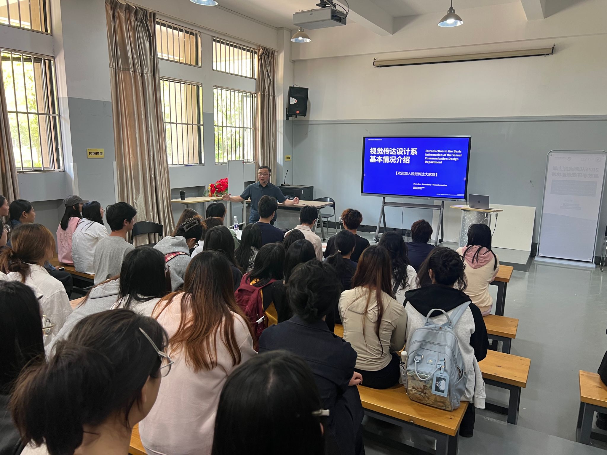 在见面会后,由设计学院视觉传达设计系开展专业学习说明会,由系主任陈钧、副主任潘子尧分别从专业学科发展、课程教学组织、毕业设计安排等方面对2024级视传专升本学生进行视传专业的学习说明和要求。