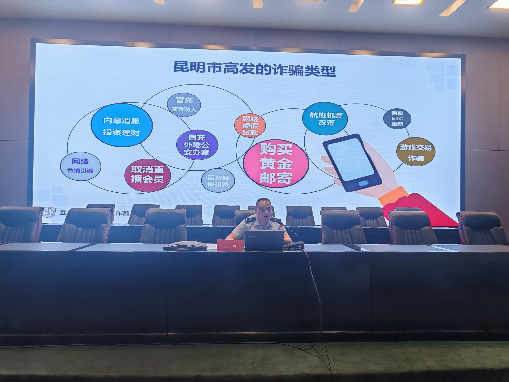 8月26日晚,美术学院特邀昆明市公安局呈贡分局反诈中心民警王旭为全体新生作了反诈专题安全教育主题讲座。王旭警官通过剖析高校发生的真实案例,详细讲解了电信网络诈骗的常见形式、作案手法、诈骗类型和防范措施。提醒同学们要牢固树立安全意识,保护好个人财产和信息安全。王旭警官的生动讲解让同学们对诈骗手段有了更清晰的认识,为新生上了一堂生动而重要的"安全第一课"。