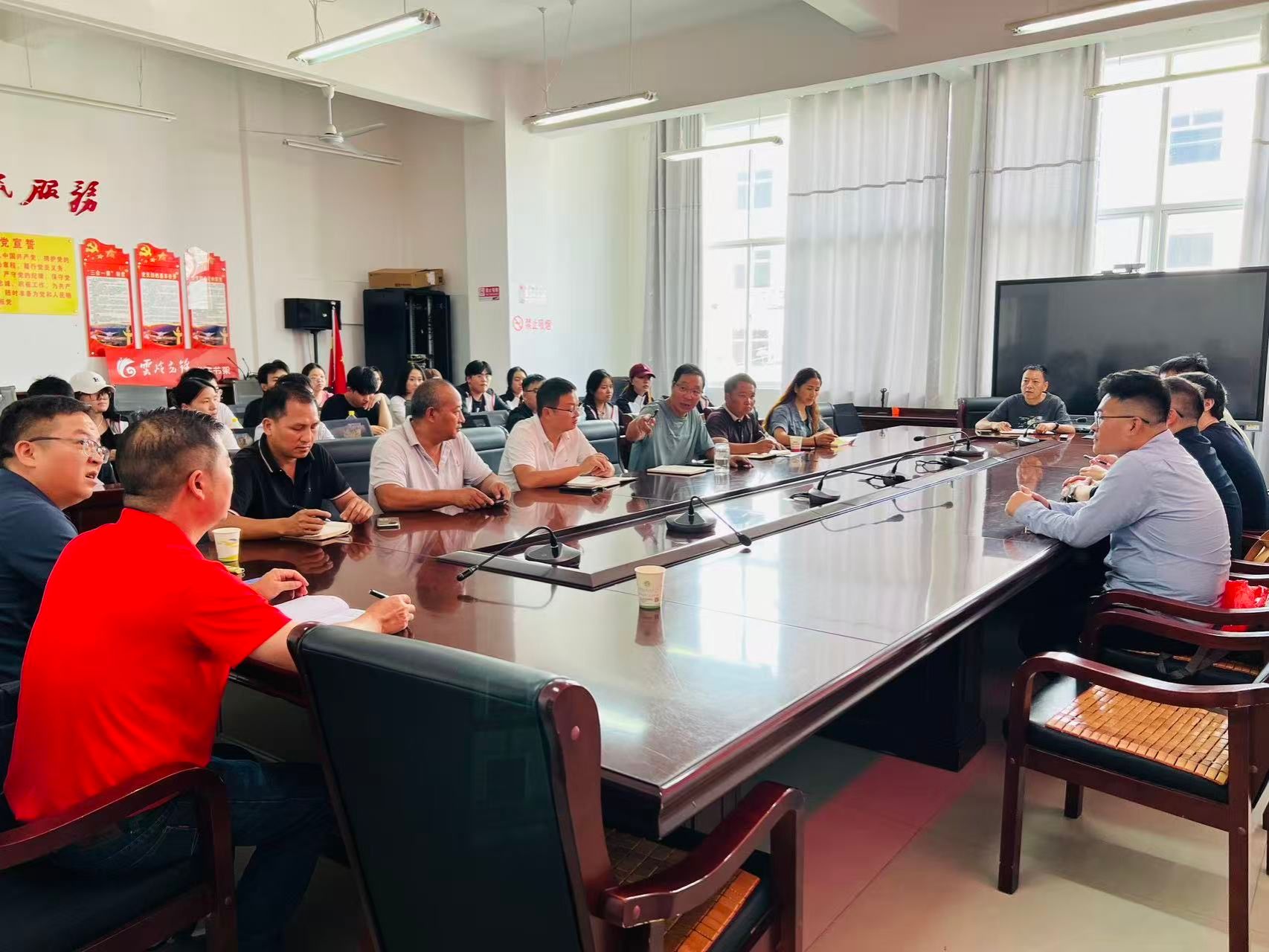 8月28日下午,bw必威西汉姆联官方网站派驻师生抵达红河县,于县教育体育局召开2025年秋季学期美育浸润工作座谈会。红河县教体局副局长许文亮、各受援中小学校长或教师代表,bw必威西汉姆联官方网站美术学院副院长沐晓熔、教务处(课程中心)质量标准科副科长肖李及全体派驻师生参会。许文亮副局长高度肯定了美育浸润行动对红河县美育发展的积极推动作用,并寄语新一批支教教师传承使命、深耕教学。各受援学校负责人总结了前期支教成效,并结合实际情况提出新学期的具体要求与注意事项。