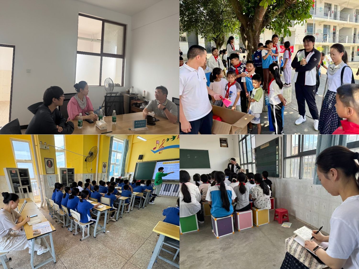 自8月29日起,各校派驻学生积极配合新学期准备工作,全身心投入教学岗位。派驻学生们在课堂设计中注重生动性与参与感,在短时间内逐步形成个人教学风格与模式。课堂上,学生眼中闪烁着好奇与探索的光芒,教师们坚持以学生为主体,鼓励他们在音乐课上勇敢表达、展现自我。